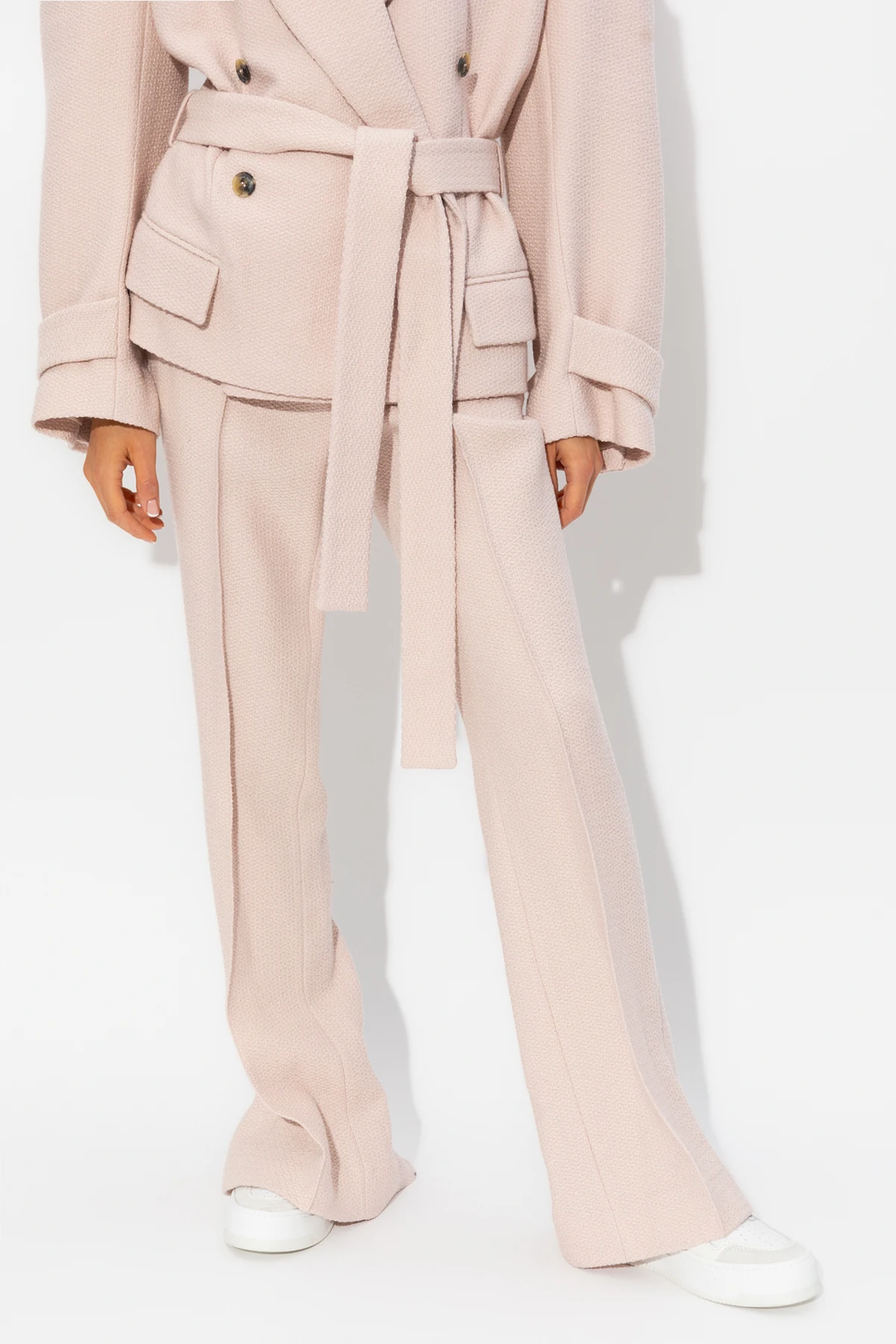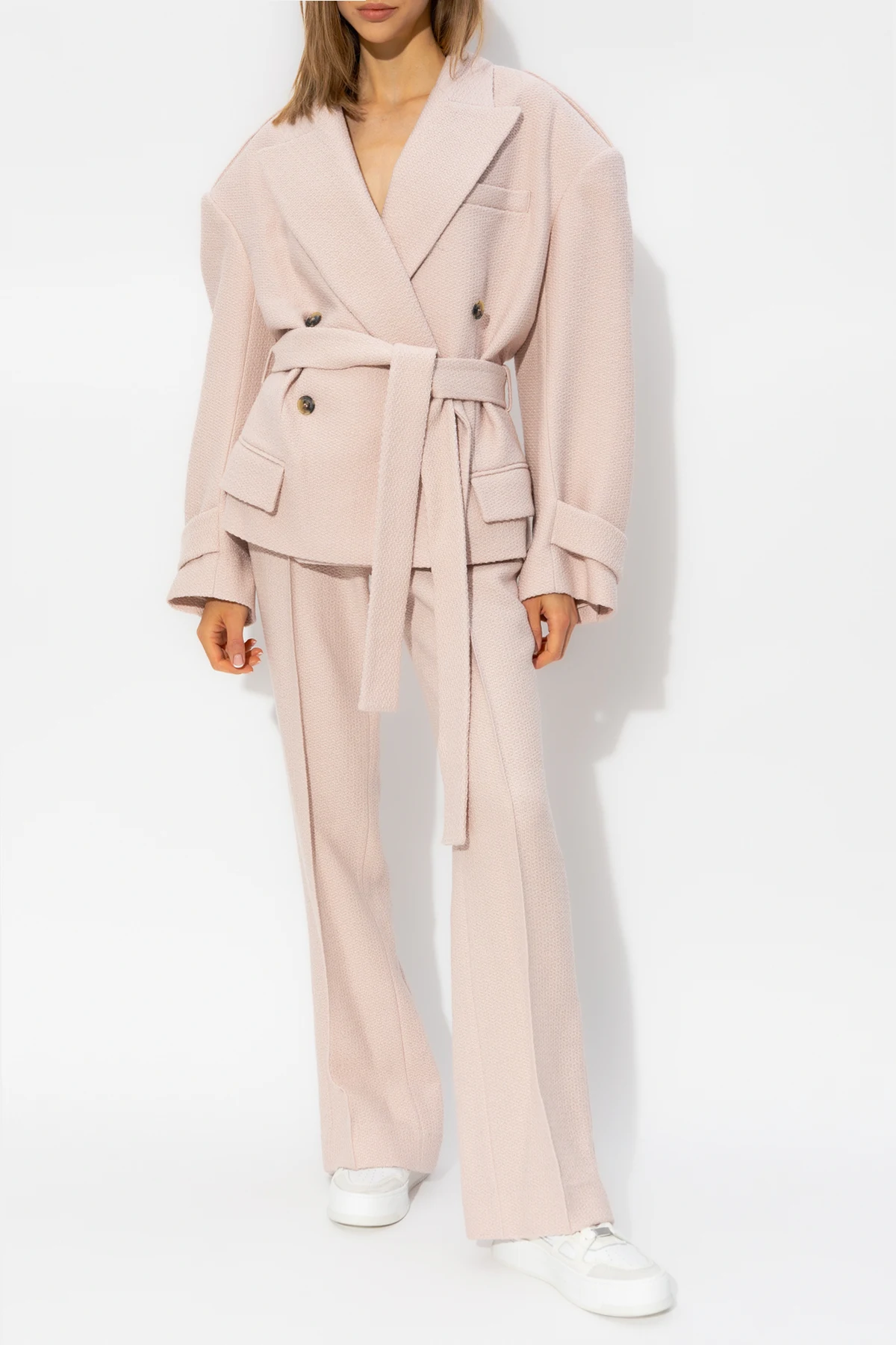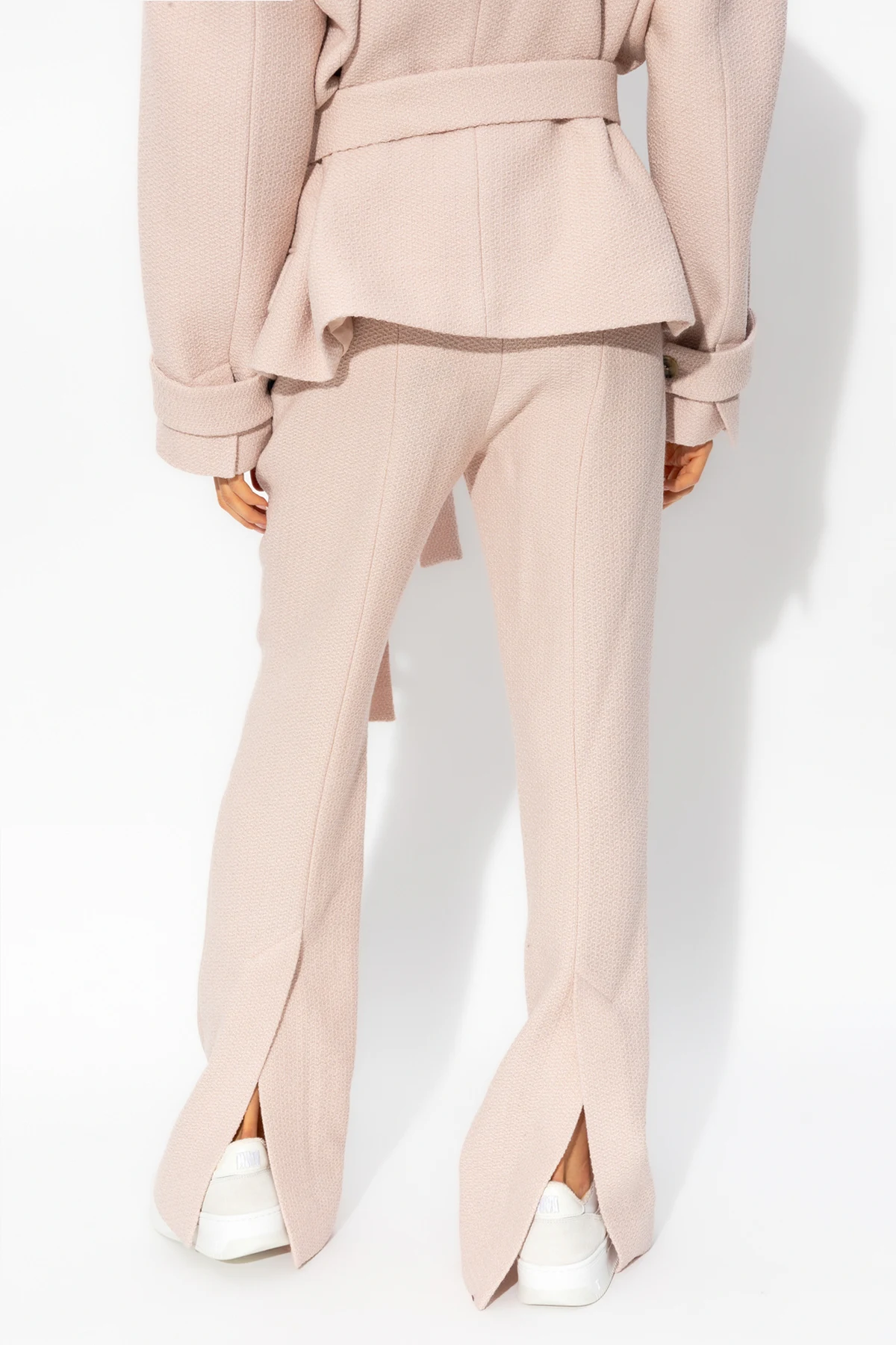 Pink ‘Sewan’ pleat-front trousers from The Mannei. Made from wool, this pair falls with wide legs and features a zip fly with hook & eye closures, two slip pockets and back hem splits.
