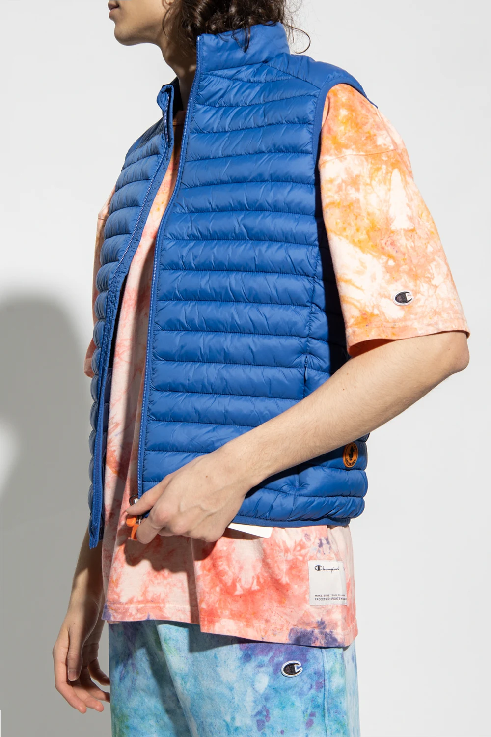 Navy blue ‘Adamus’ quilted vest with a standing collar from Save The Duck. Fastened with a zipper, this style features two front zip pockets, a navy blue lining and a rubber logo patch on the side. It\'s made with high-density 100% nylon fabric which guarantees weightlessness and fluffiness. It is thin yet resistant, thanks to its features it guarantees water repellency and wind protection, it absorbs humidity and dries rapidly.