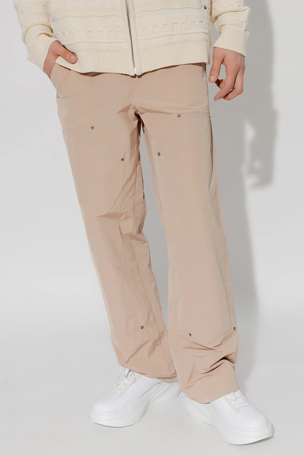 Beige trousers from 424. Crafted from a cotton blend and punctuated with studs, this pair features a zip fly with a button and hook and four slip pockets.