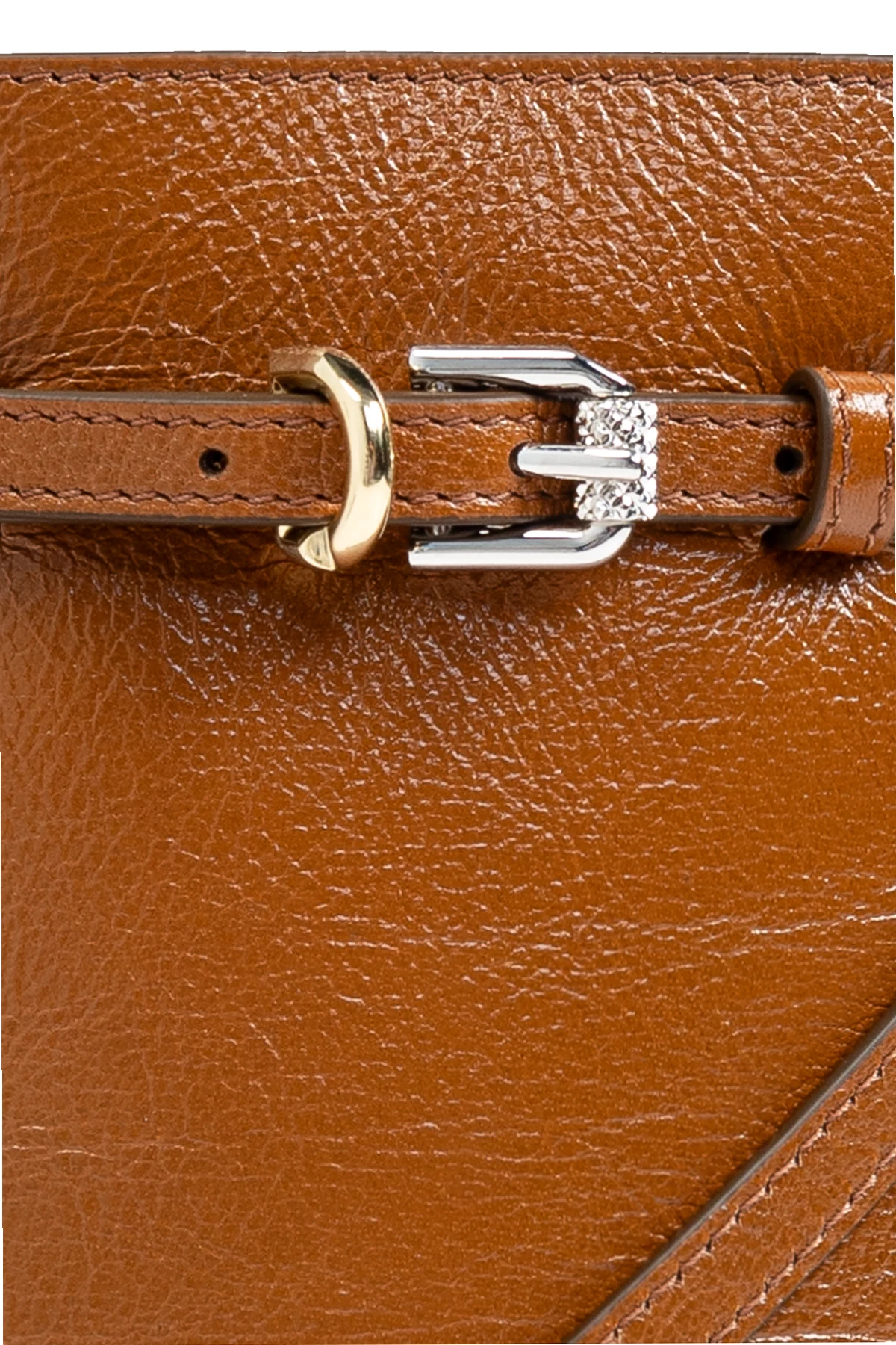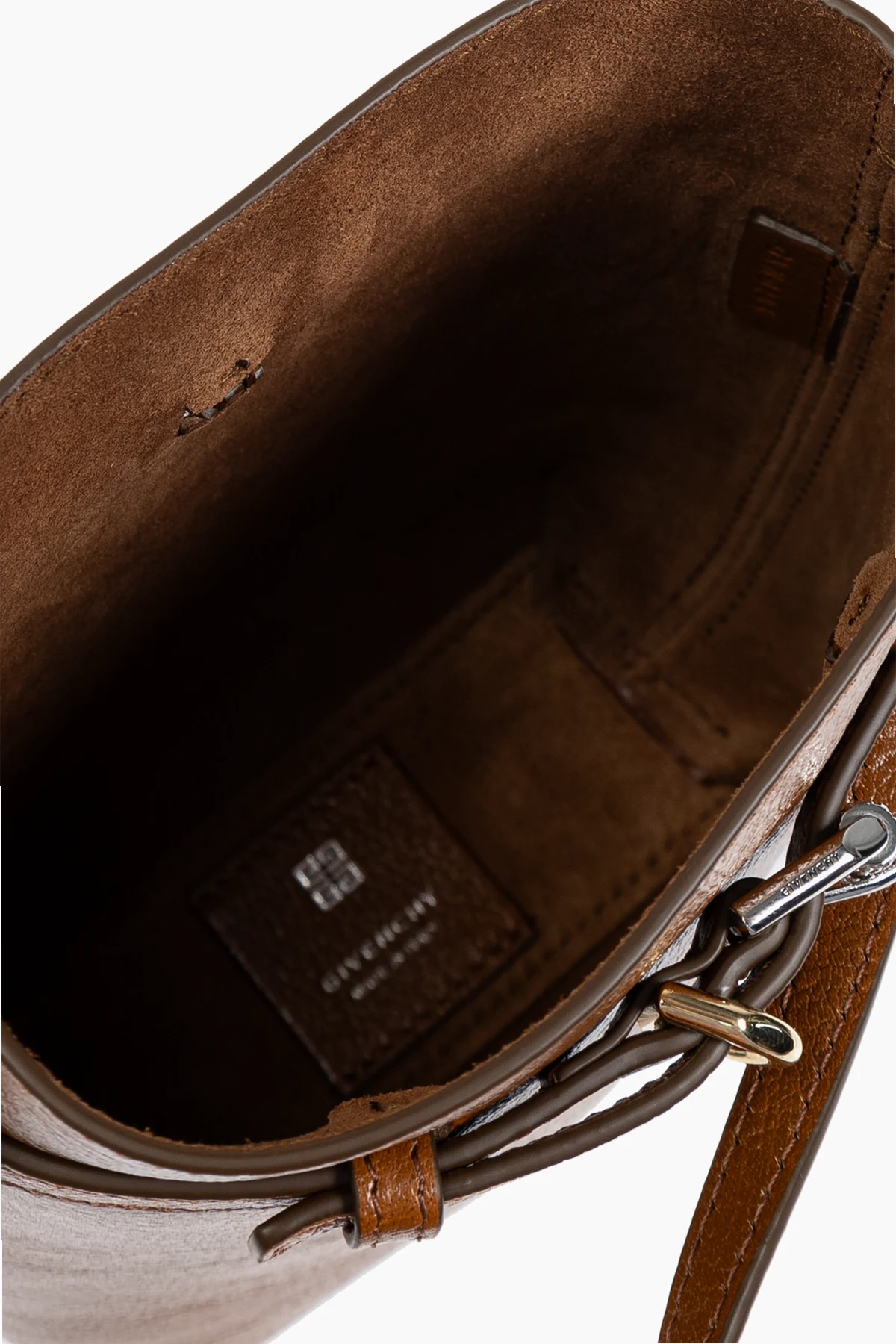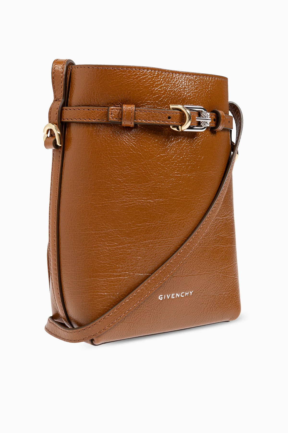 Introducing an exquisite accessory that redefines sophistication - the Givenchy Leather Phone Case. Crafted with an astute attention to detail, this brown phone case is an epitome of luxury and functionality. The external layer, made of premium bovine leather, showcases a discernible weave and texture that speaks volumes of its high-quality craftsmanship. Similarly, the interior is lined with supple calfskin leather, ensuring your device remains cushioned against daily wear and tear. Designed for the modern individual, this case features a slightly rounded silhouette complemented by a sleek, adjustable strap for shoulder wear. The front is adorned with a silver buckle closure and the iconic Givenchy logo, subtly asserting its designer pedigree. Inside, a main compartment along with an additional inner pocket offers ample space for organized storage, blending functionality with elegance. Whether showcased through different angles or modeled for size reference, the uniform color and style of this case maintain its allure. Details like the silver buckle with decorative elements and the brand\'s label on the interior further accentuate its exclusivity. Why Purchase This Product? Made from superior quality bovine and calfskin leather Features a stylish and functional design with an adjustable shoulder strap Equipped with a secure silver buckle closure and an additional inner pocket for organization Embellished with the discreet yet recognizable Givenchy logo, adding a touch of luxury