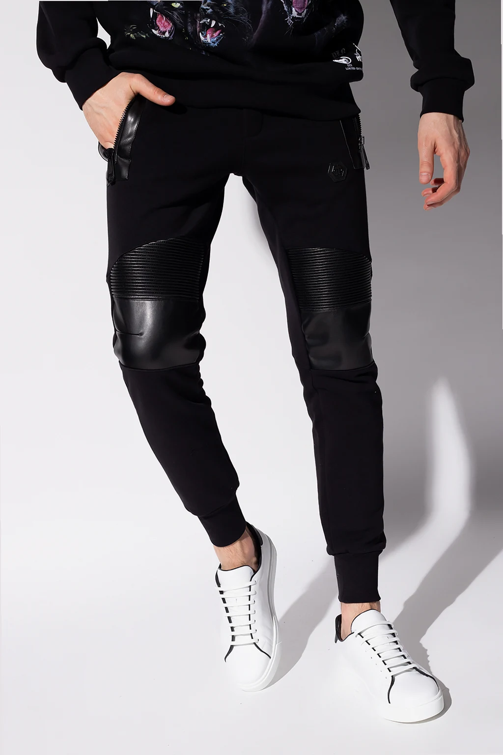Black sweatpants from Philipp Plein. Crafted from cotton, this design features a drawstring fastening, two front zip pockets, printed pattern, back slip pocket and elasticated cuffs.