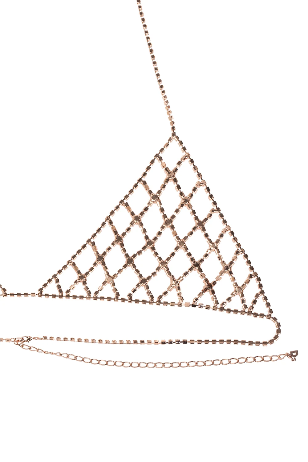 Rose gold-tone bra from Dsquared2. Fastened at the back and neck, this item is made from metal and embellished with rhinestones.
