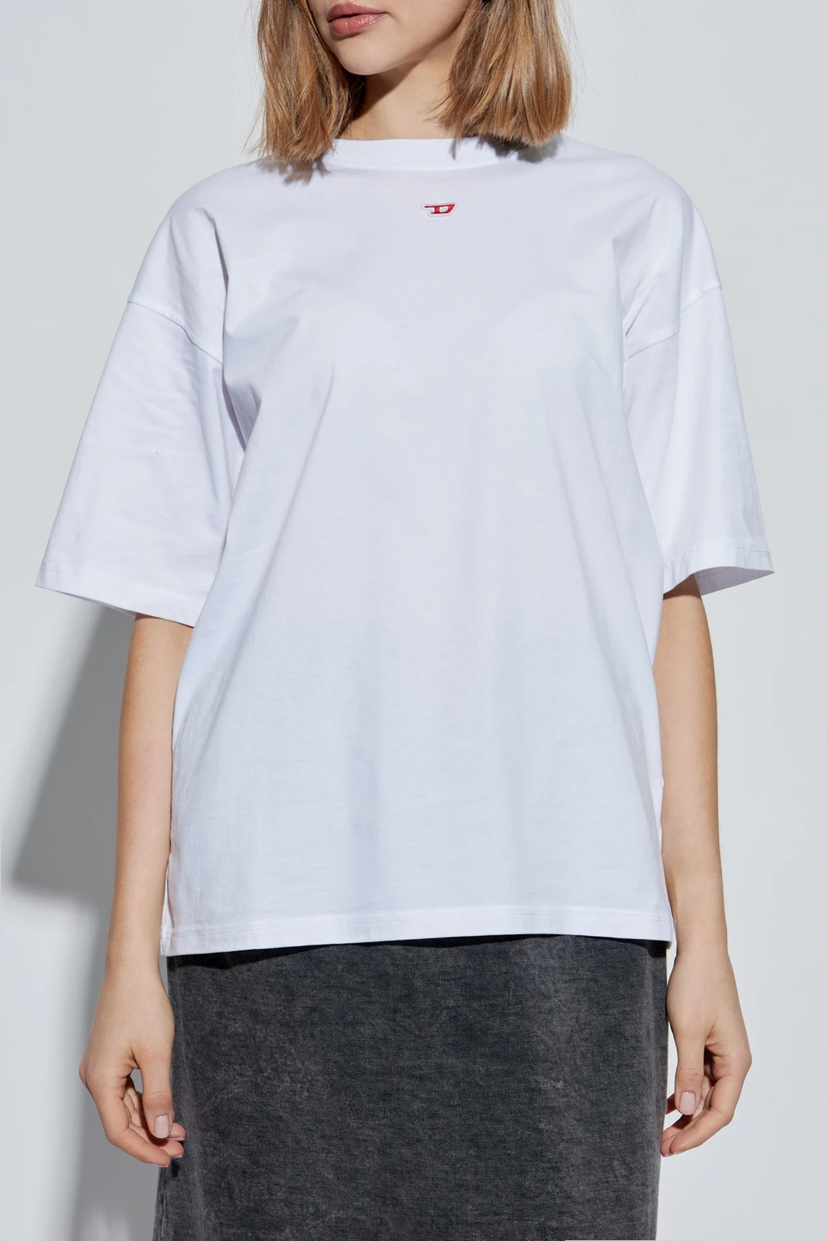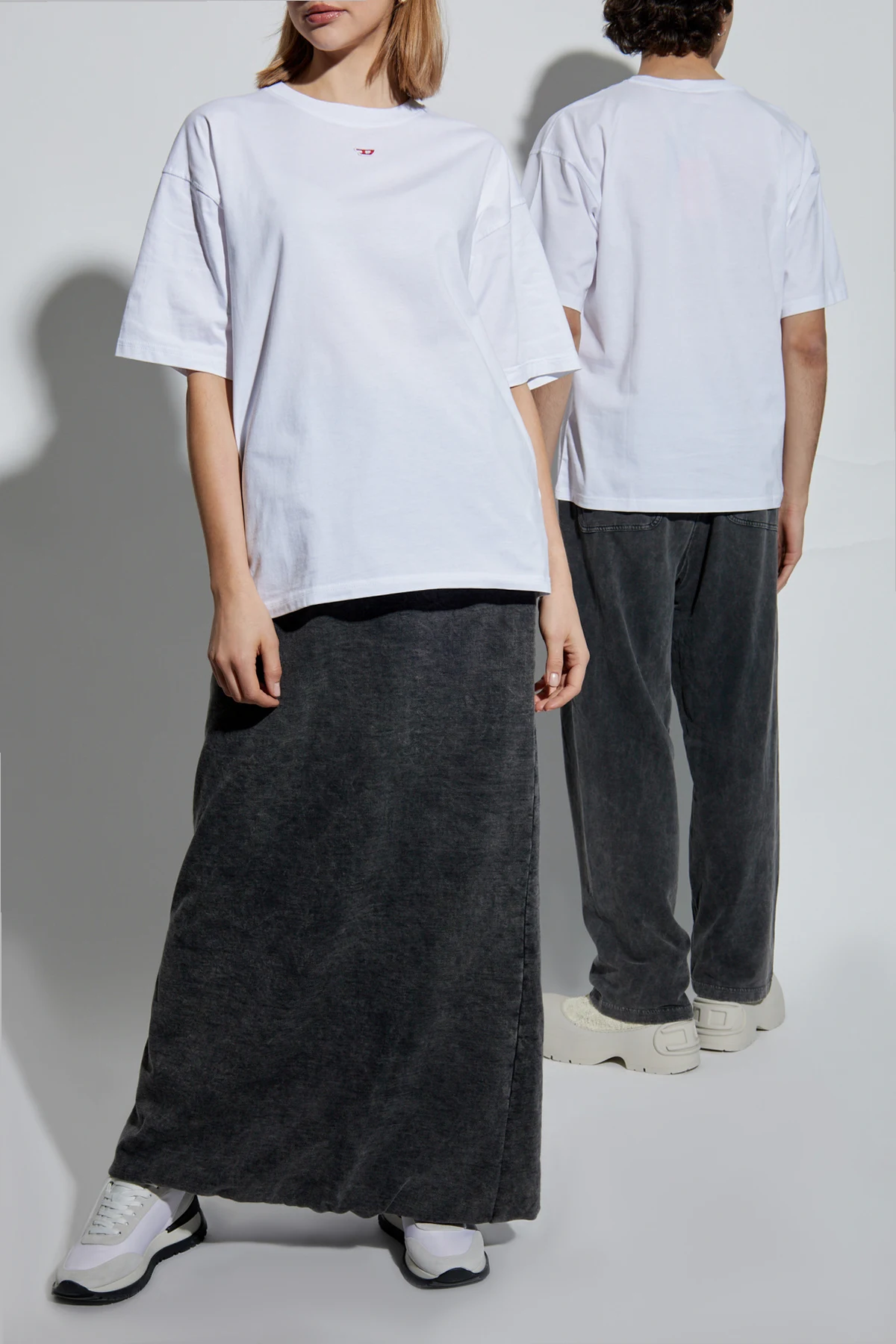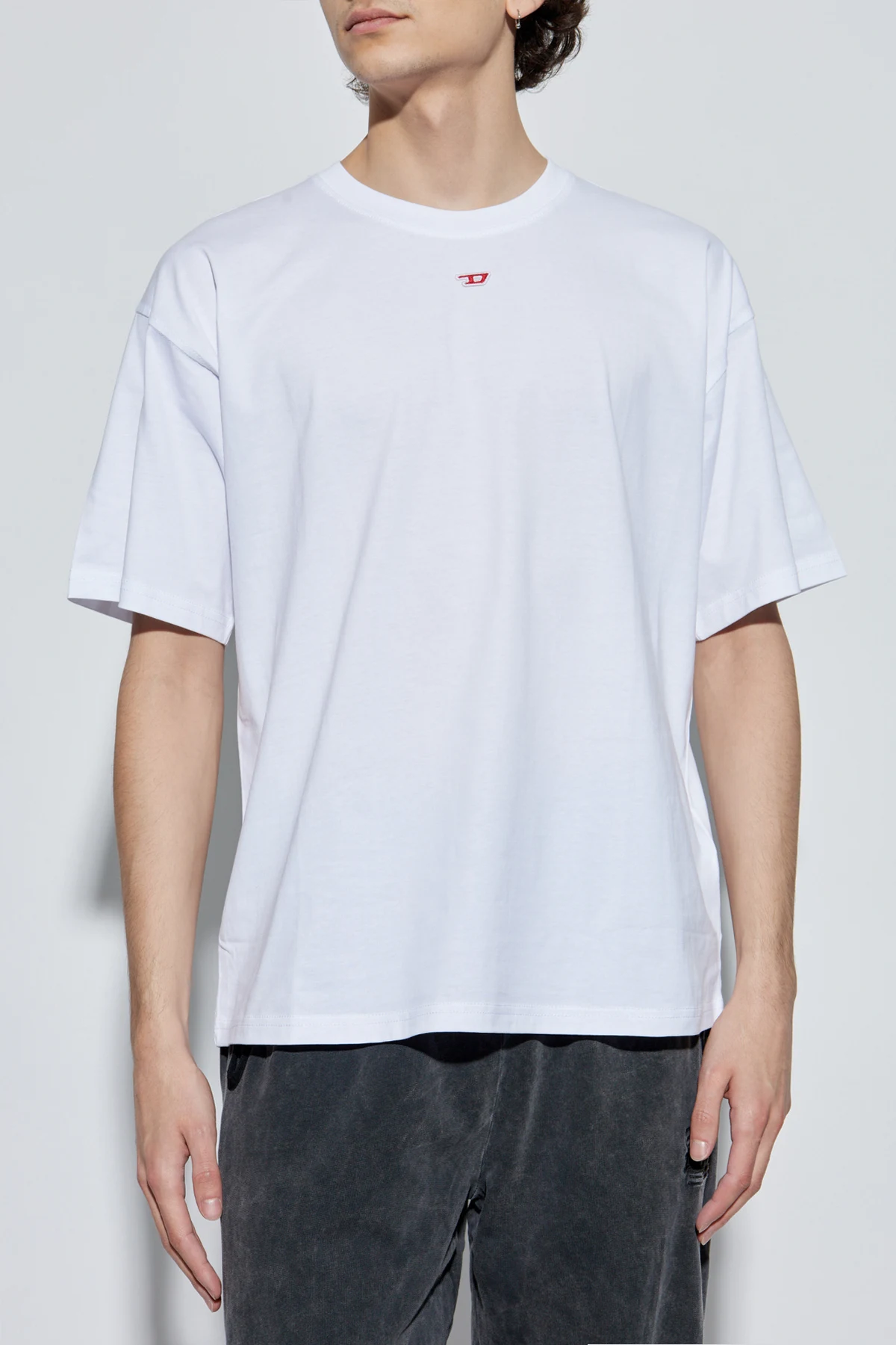 Introducing the T-BOXT-D T-shirt from the exclusive collection of the illustrious designer brand Diesel. Renowned for its mastery in crafting exceptional jeans and accessories, Diesel presents this timeless piece, seamlessly merging style with comfort. Refined in its simplicity, this T-shirt boasts a classic cut with short sleeves and a crew neck, offering a versatile minimalist design. Crafted from 100% premium cotton, it ensures unparalleled comfort and breathability. Its pristine white hue serves as a perfect canvas for a subtle yet distinctive detail—a small red logo emblazoned with the letter \"D\" on the chest, symbolizing both sophistication and exclusivity. This T-shirt effortlessly elevates any wardrobe, suitable for both casual and refined ensembles. Why Choose This Product? Exquisite craftsmanship by the prestigious brand Diesel. High-quality cotton offering supreme comfort. Versatile design perfect for various occasions. Subtle yet unique logo detail for a touch of elegance.