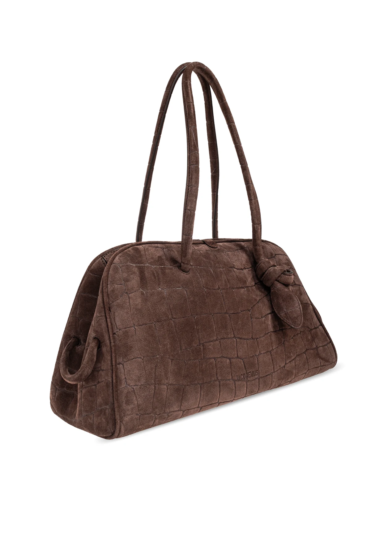 The ‘Le Turismo’ tote bag by Jacquemus redefines understated sophistication with its classic, rectangular silhouette and gently rounded contours. Crafted from luxuriously soft suede, the exterior is embossed with an artful, crocodile-inspired texture, lending a refined and tactile allure. The two slender, elongated handles offer graceful versatility, perfectly suited for hand or shoulder carry. Distinguished by an exquisite decorative knot, meticulously fashioned from matching suede and positioned near one handle, this detail elevates the bag’s unique luxury appeal. The interior, lined in premium cotton, offers a seamless balance of elegance and functionality. Free from overt branding, ‘Le Turismo’ is a tribute to Jacquemus’s avant-garde sensibility—inviting you to experience modern artistry in its purest form. Why choose this product? Exceptional craftsmanship with high-quality suede and cotton lining Iconic crocodile-embossed pattern for a distinctive, upscale look Statement decorative knot detail for refined individuality Versatile unisex design by renowned designer Jacquemus Elegant silhouette suited for both formal and casual occasions