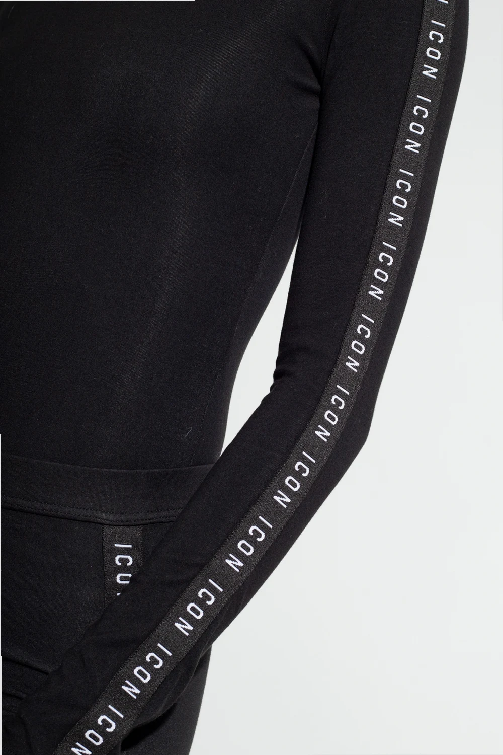 Black bodysuit from Dsquared2. Made of cotton, this style features a round neck, long sleeves, snap closures at the crotch and textured fabric inserts with an embroidered white logo.