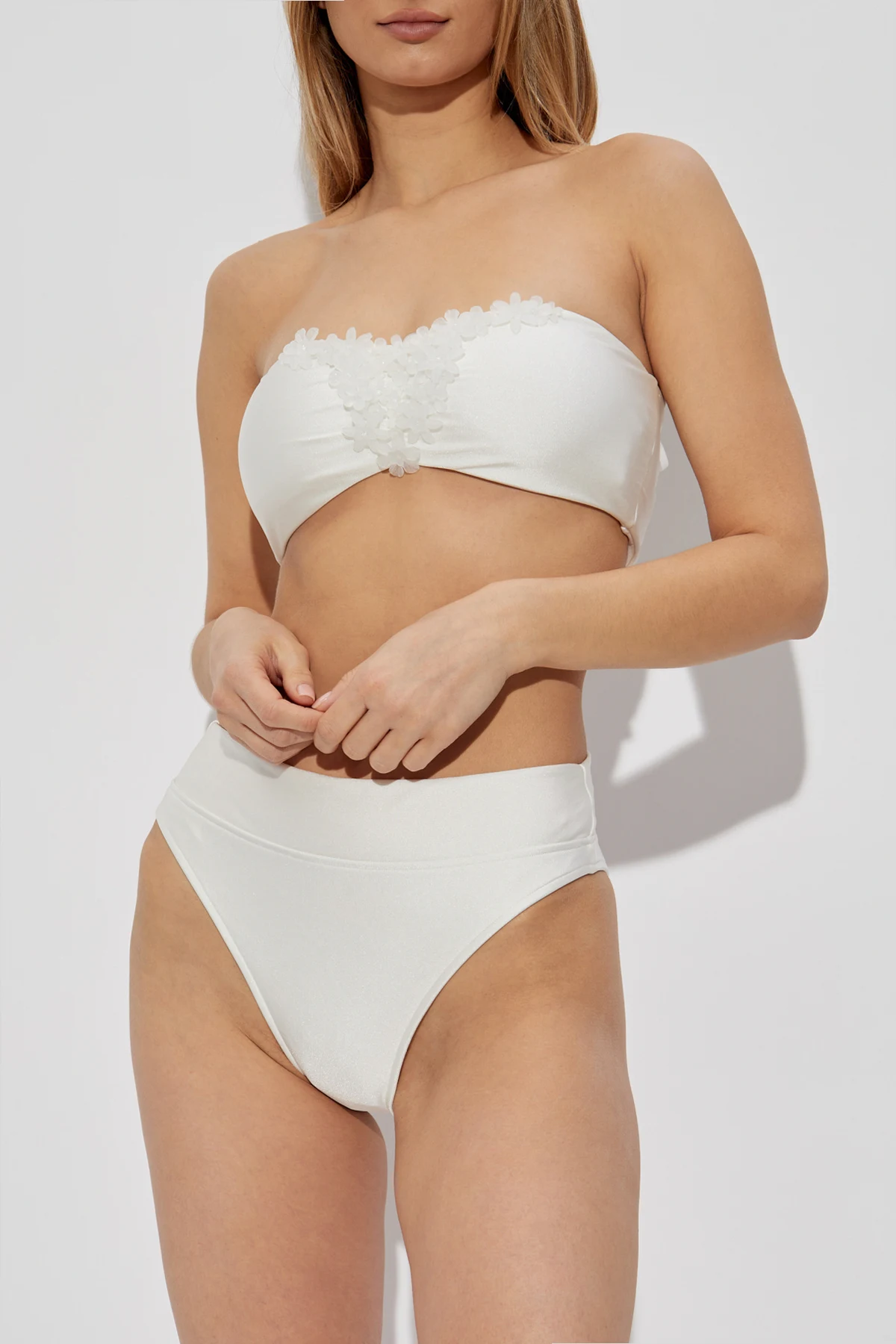 Introducing the Ursula Bandeau Top from the illustrious Cult Gaia, a name synonymous with opulence and innovation. Part of the exclusive beachwear collection, this white bandeau top exudes elegance with its strapless silhouette, artfully adorned with a three-dimensional floral applique that encapsulates the essence of femininity and nature. Crafted from a luxurious blend of elastane and polyamide, this top promises a seamless fit and unrivaled comfort, making it an essential for any sophisticated beach outing. The central floral applique not only adds an exquisite decorative touch but also highlights the unique charm of this piece, ensuring you stand out effortlessly. Why Choose This Product? Designed by the iconic Cult Gaia, known for bold and timeless creations. Features a unique 3D floral applique for a touch of elegance. Made from a premium blend of materials for superior comfort and fit. Includes removable padded cups for customizable support.