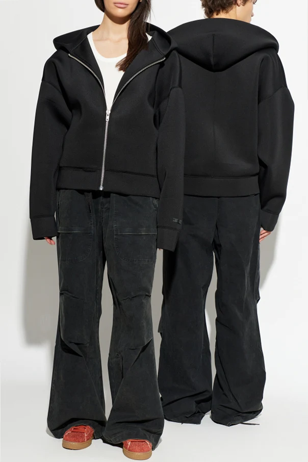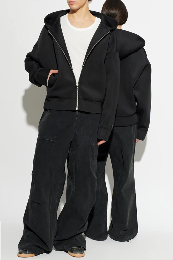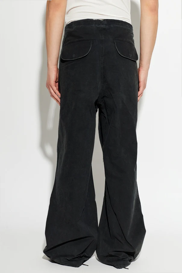 Elevate your casual wardrobe with these exceptional grey wide-leg trousers from ENTIRE STUDIOS. Designed for a unisex audience, their pronouncedly loose, spatial silhouette falls well below the ankle for a modern, avant-garde look. The substantial, cotton canvas-inspired fabric boasts a subtly worn, vintage finish, infusing timeless character and understated sophistication.