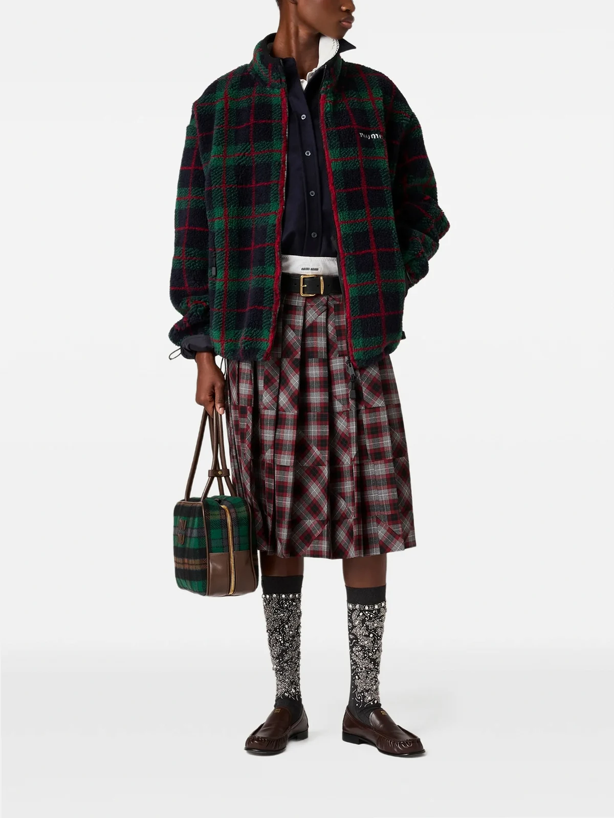 checked zipper jacket