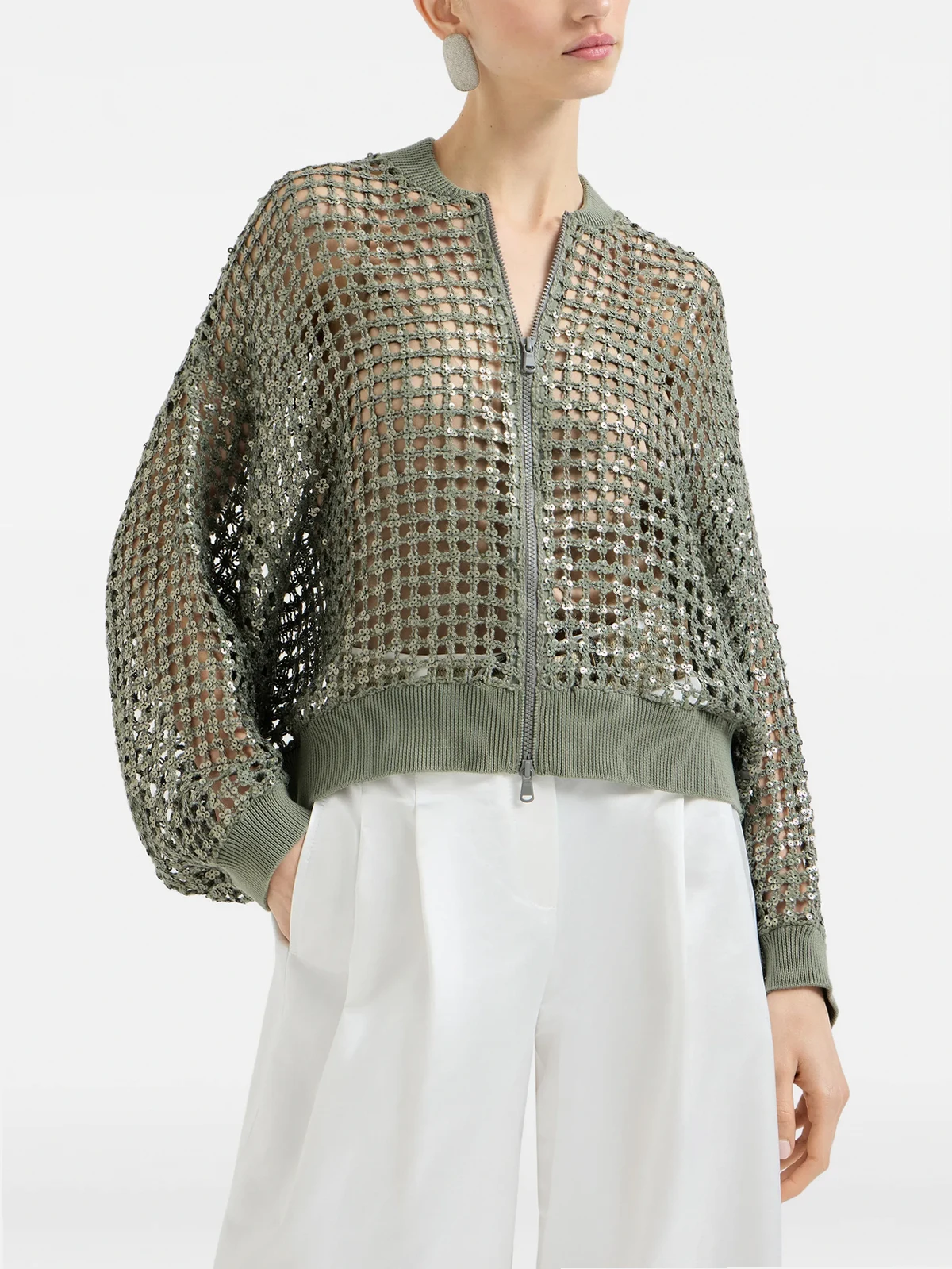 high-neck zip-through sweater