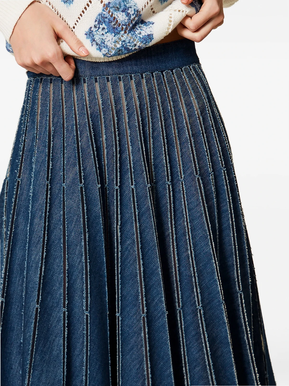 pleated denim skirt