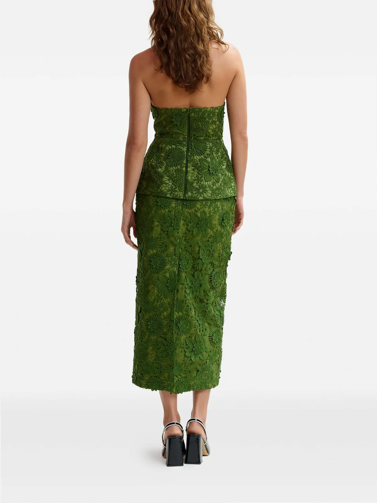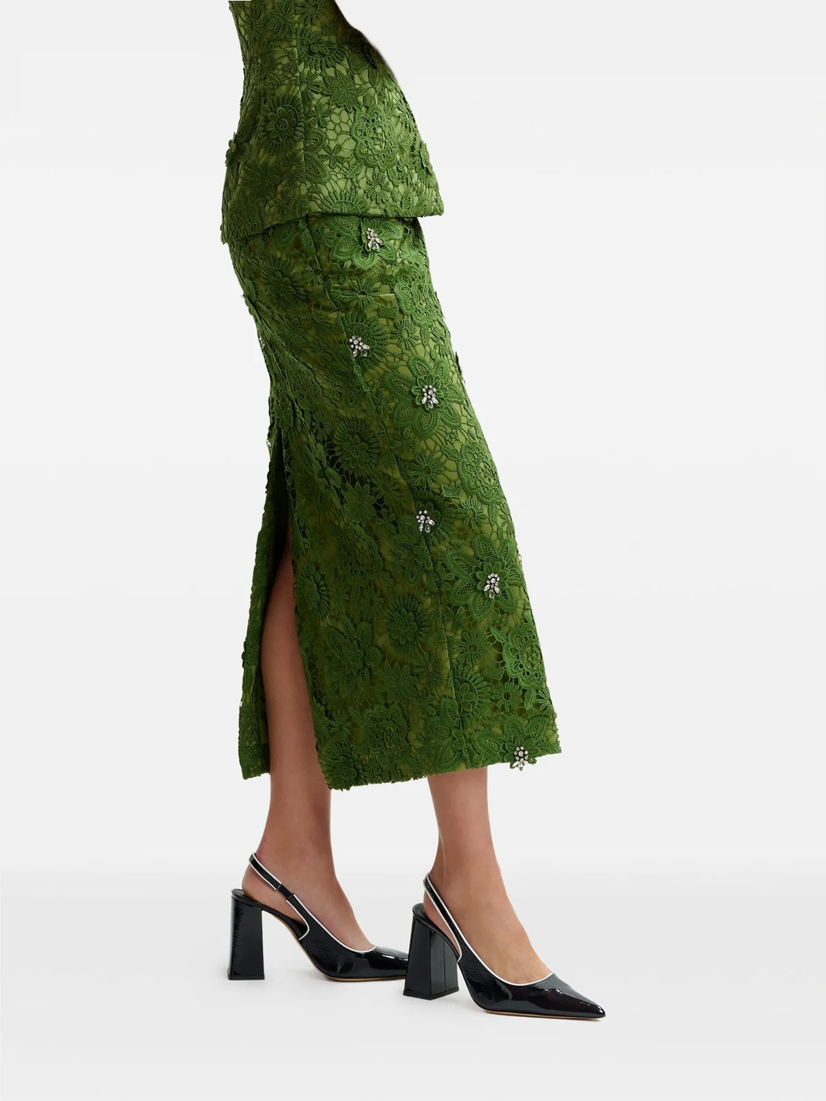 floral lace rhinestone midi skirt