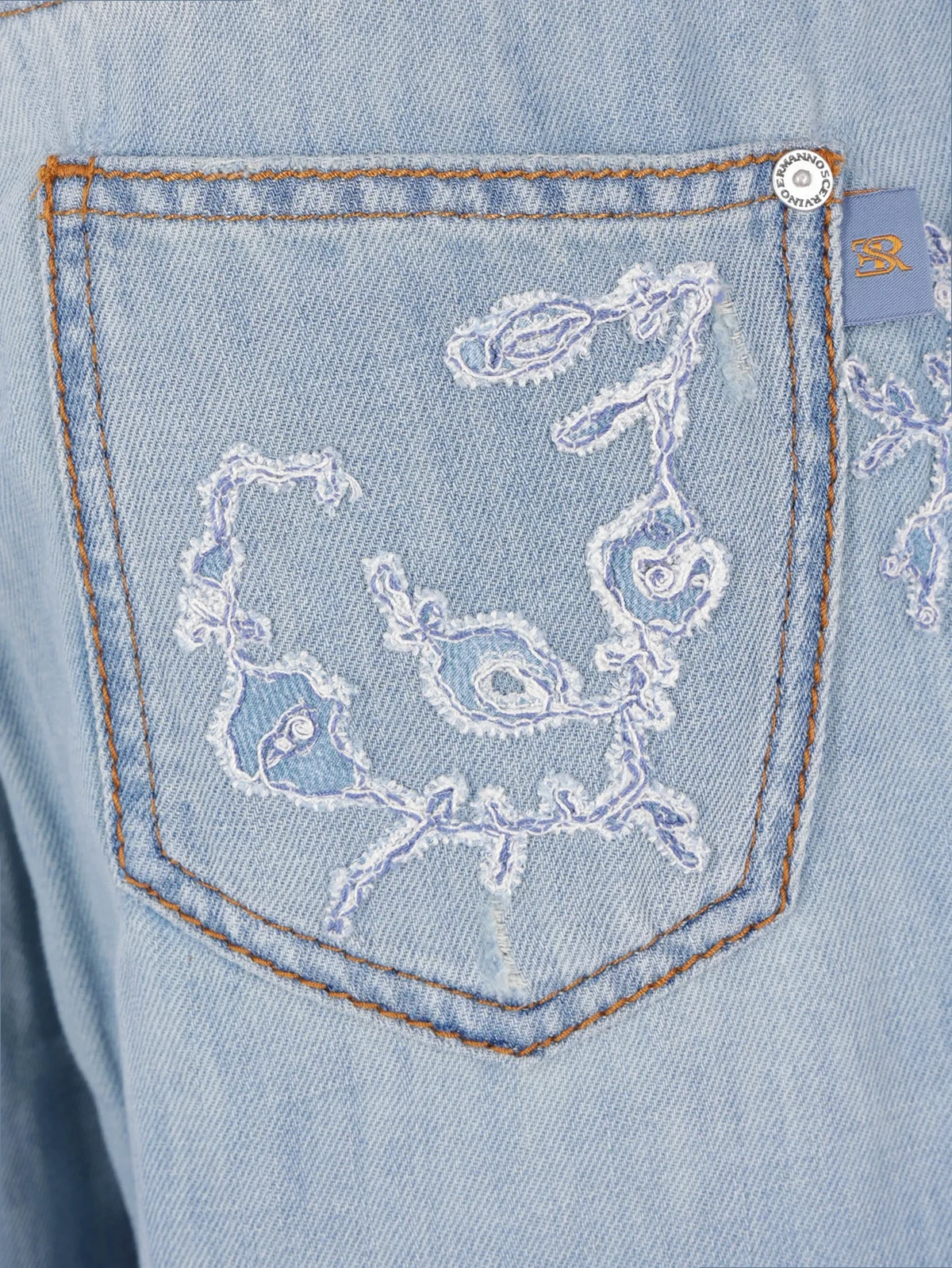 floral-embroidered buttoned jeans