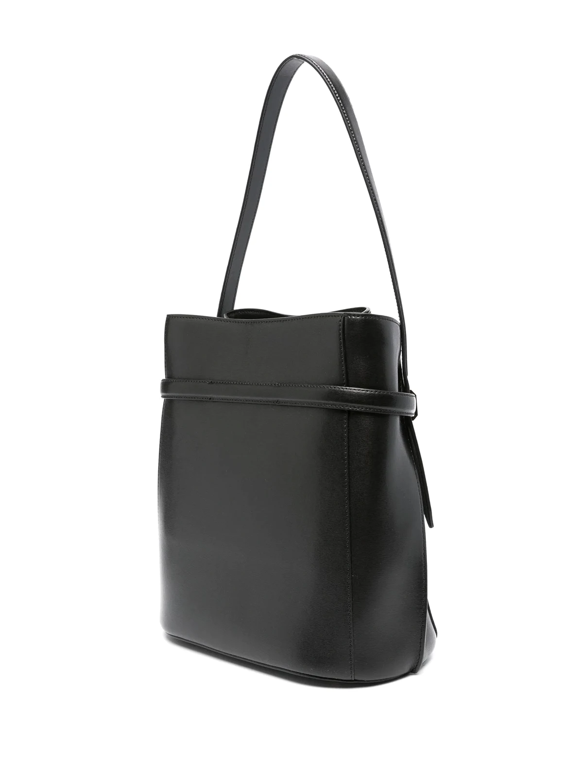 belted leather bucket bag