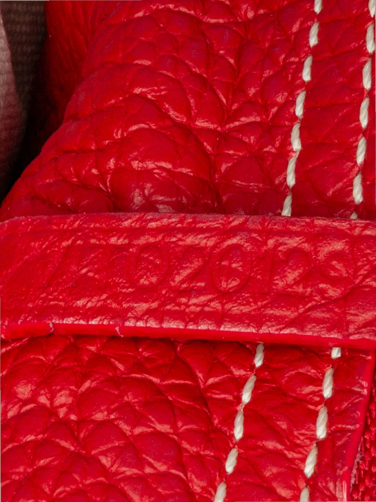 - coated canvas body with leather trim