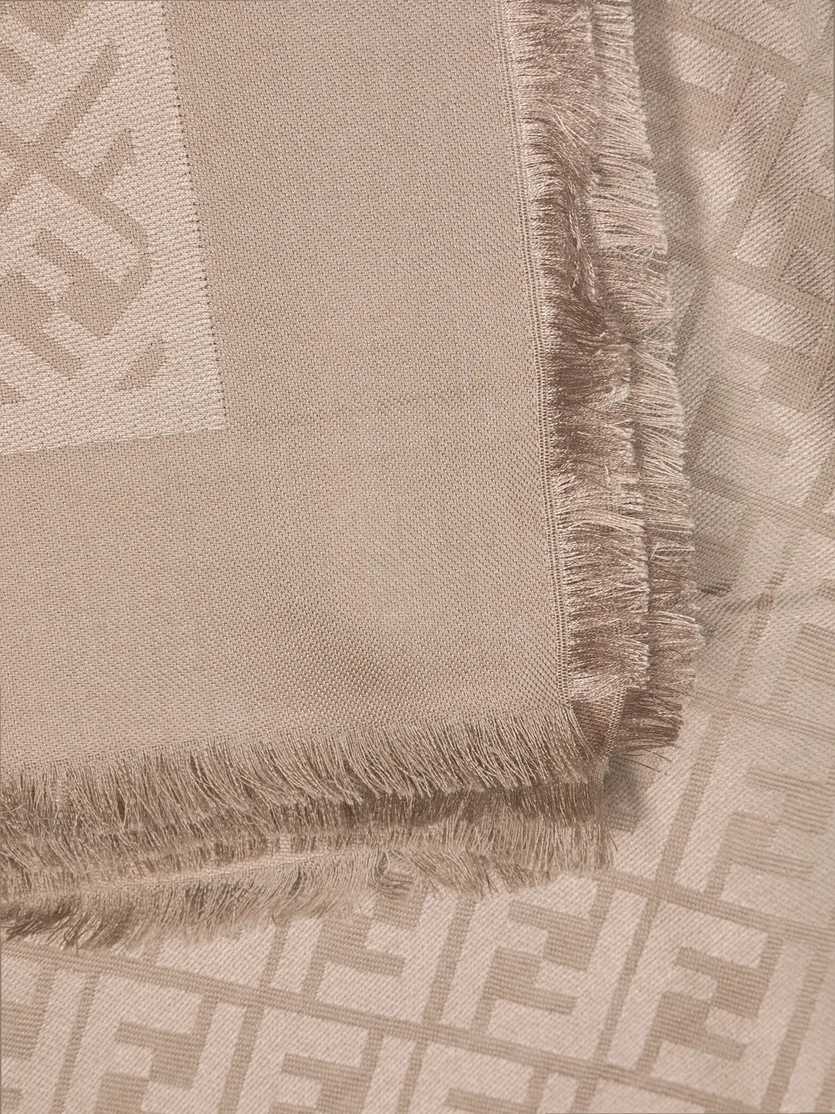 monogram-pattern frayed-hem scarf