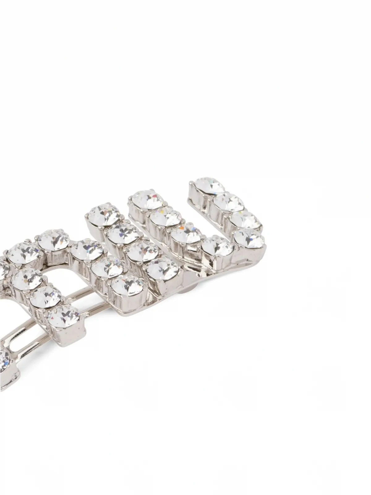 silver-tone glass/brass logo lettering crystal embellishment clip fastening