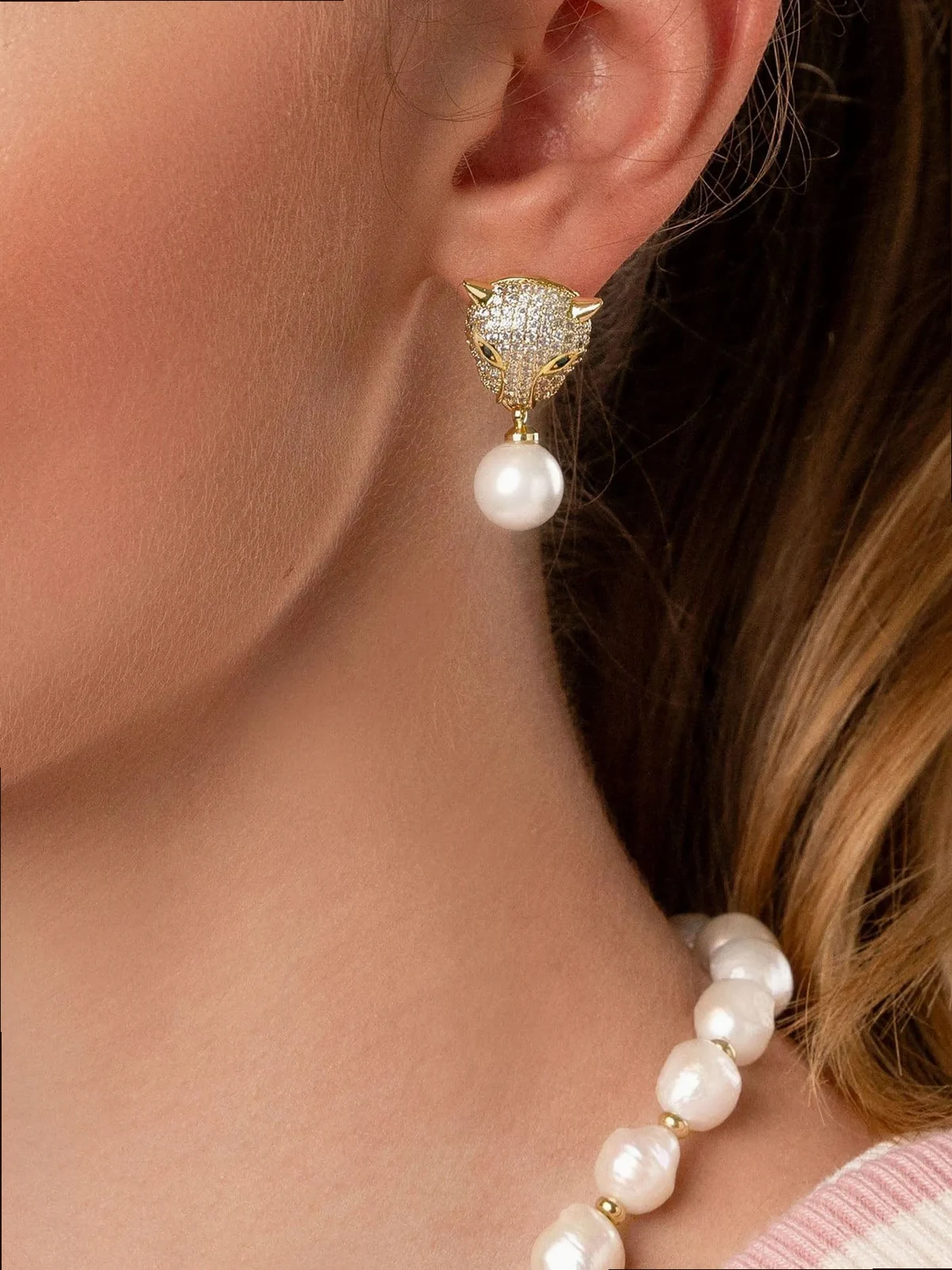 Composition Gold Plated Brass, Freshwater Pearl, Cubic Zirconia