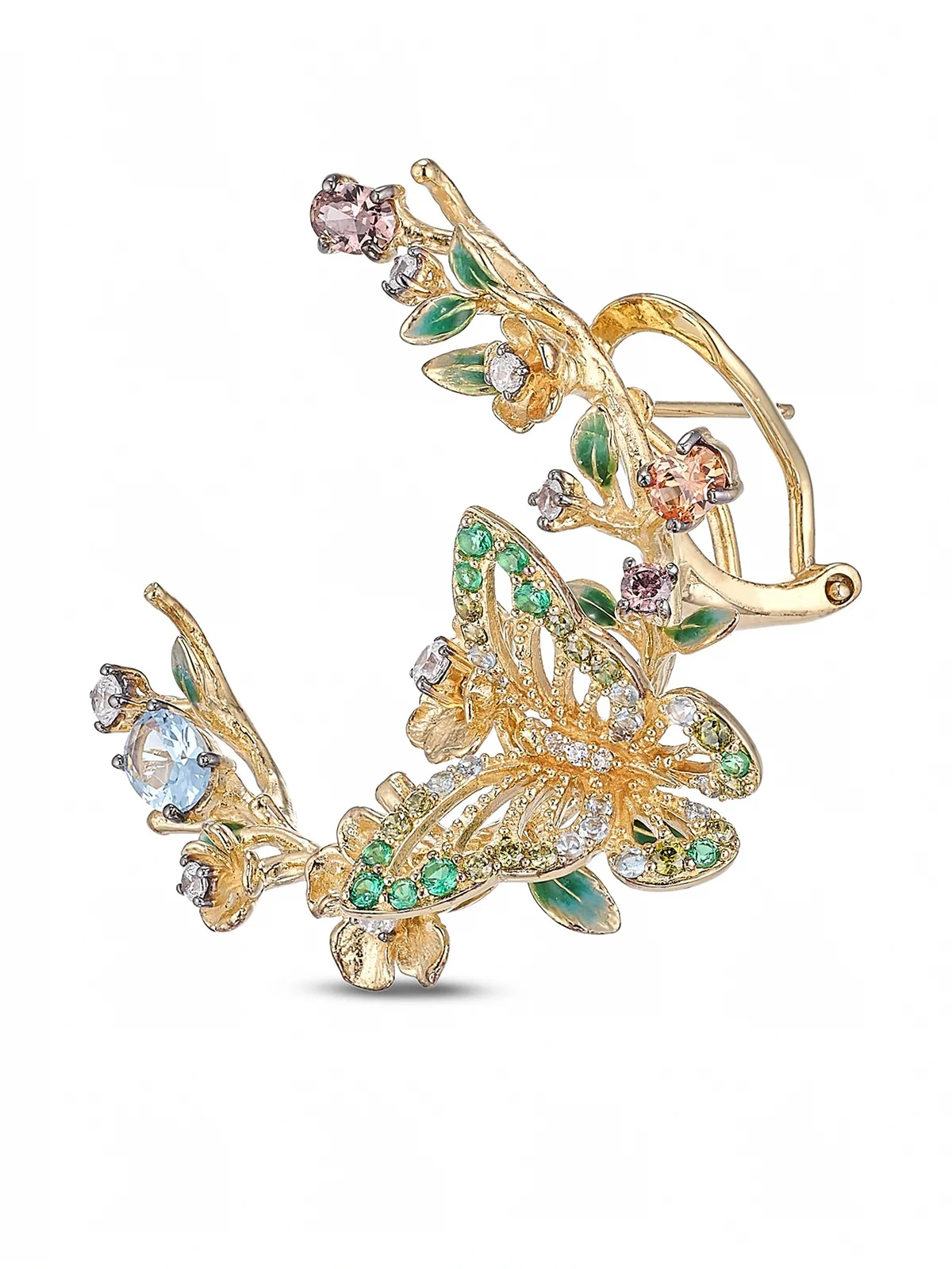 18kt Gold 100%, 18kt Yellow Gold Vermeil 100%, Lab-Grown Simulated Orange Citrine 100%, Lab-Grown Synthetic Blue Spinel 100%, Lab-Grown Simulated Aquamarine 100%, Lab-Grown Simulated Emerald 100%, Lab-Grown Simulated Green Tourmaline 100%, Lab-Grown Simulated White Diamond 100%, Enamel 100%, Lab-Grown Simulated Canary Diamond 100%