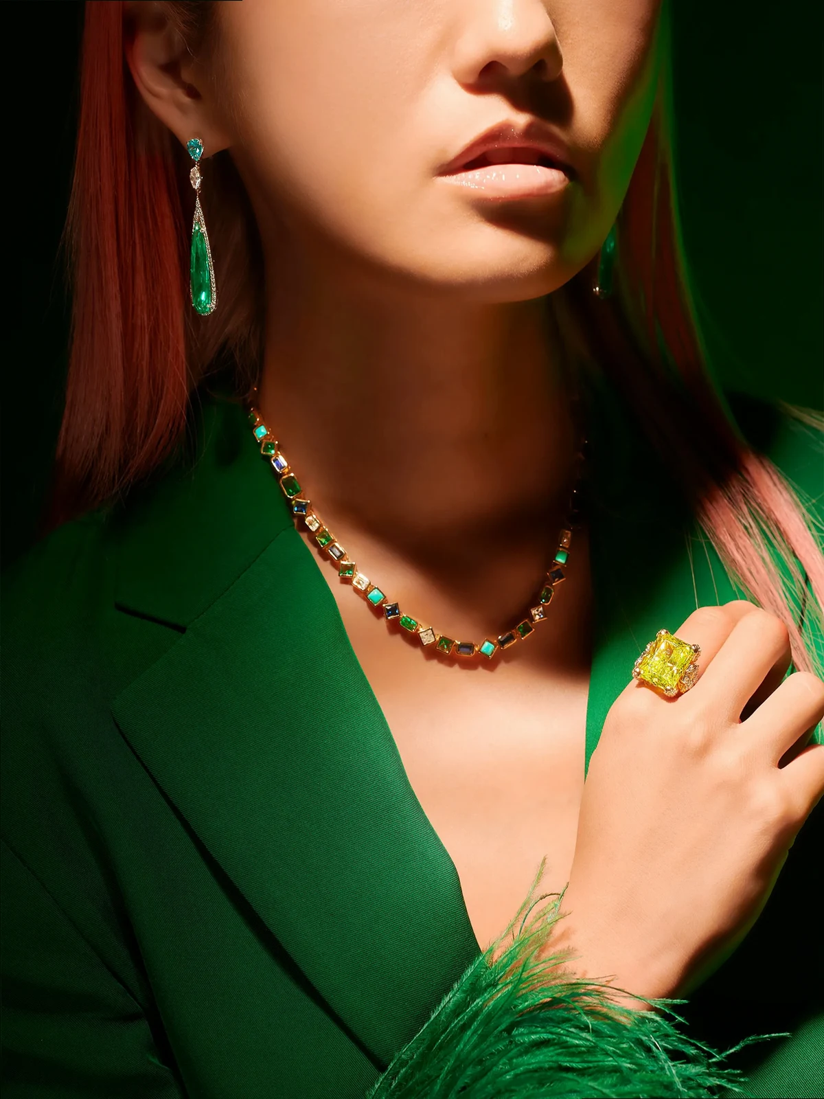 Normal everyday use and external agents may reduce the lustre of gemstones and gold surfaces. To maintain, use specific, non-abrasive products specially meant for cleaning jewellery.