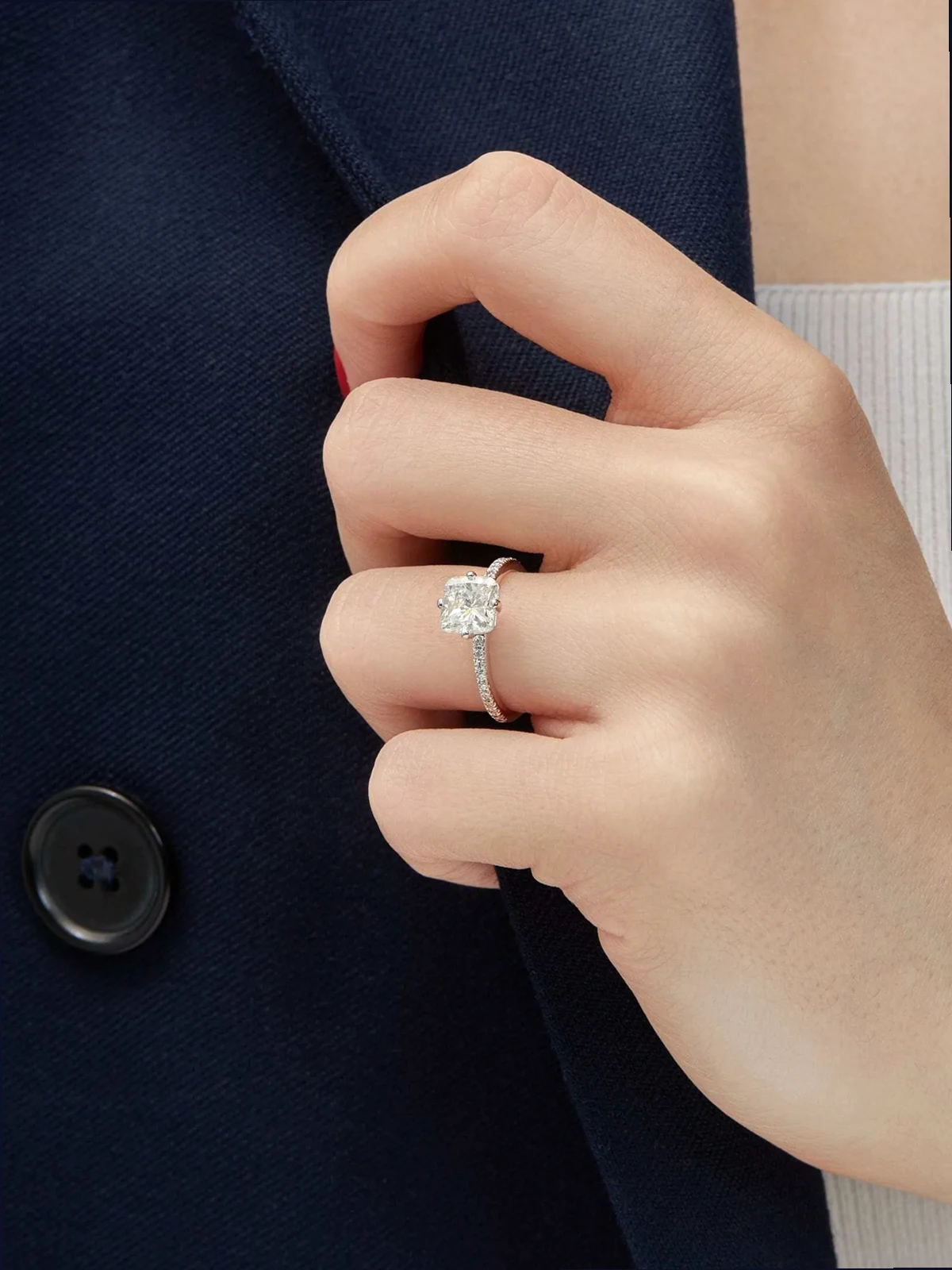 • prong and pavé-set cushion and round-cut VS2 diamonds totalling 1.50 carats