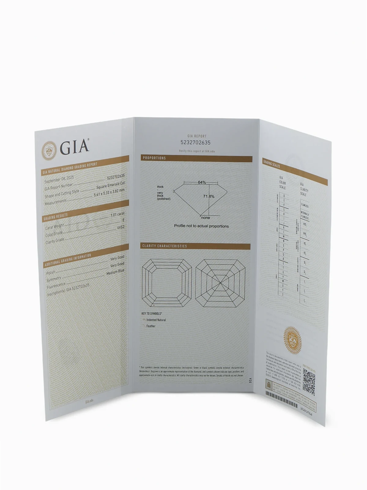 • prong-set square-cut E-VVS2 diamond totalling 1.01 carats