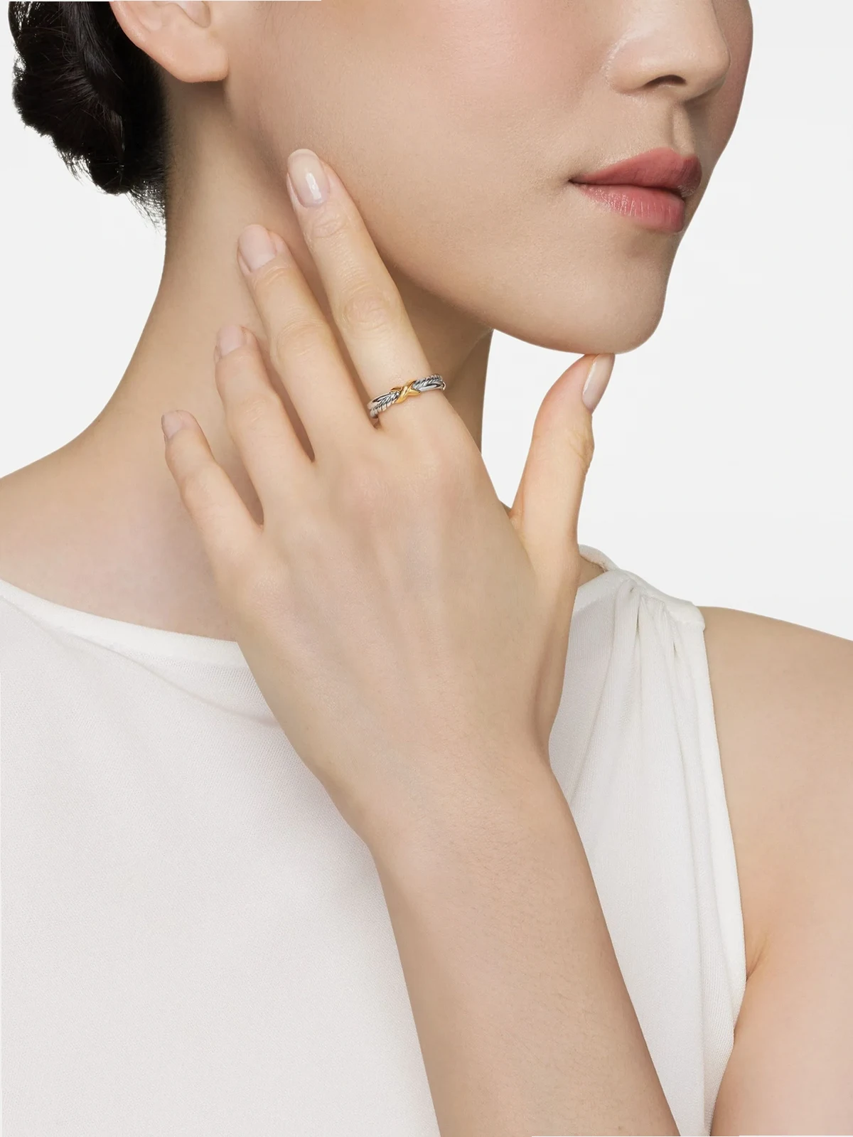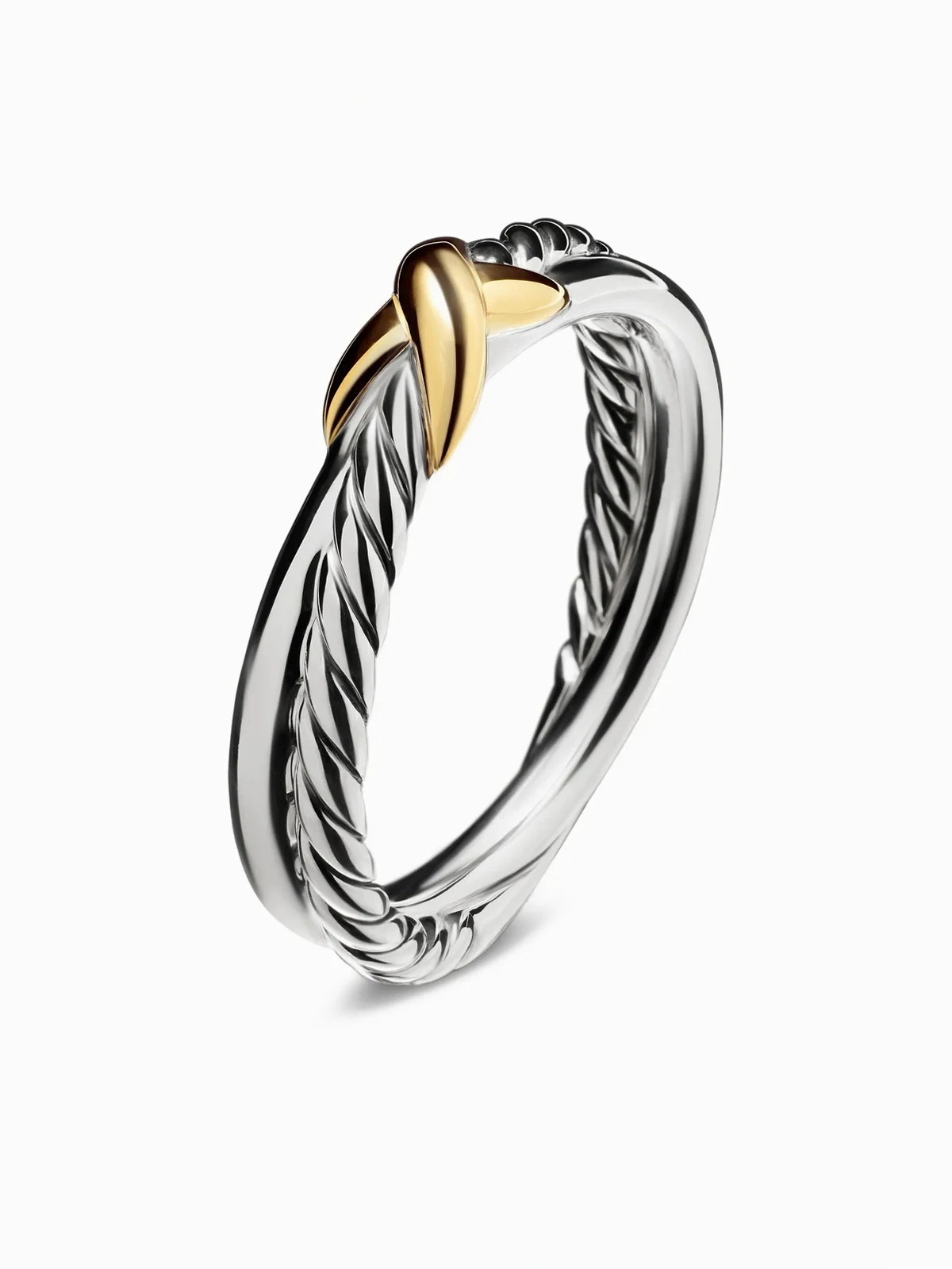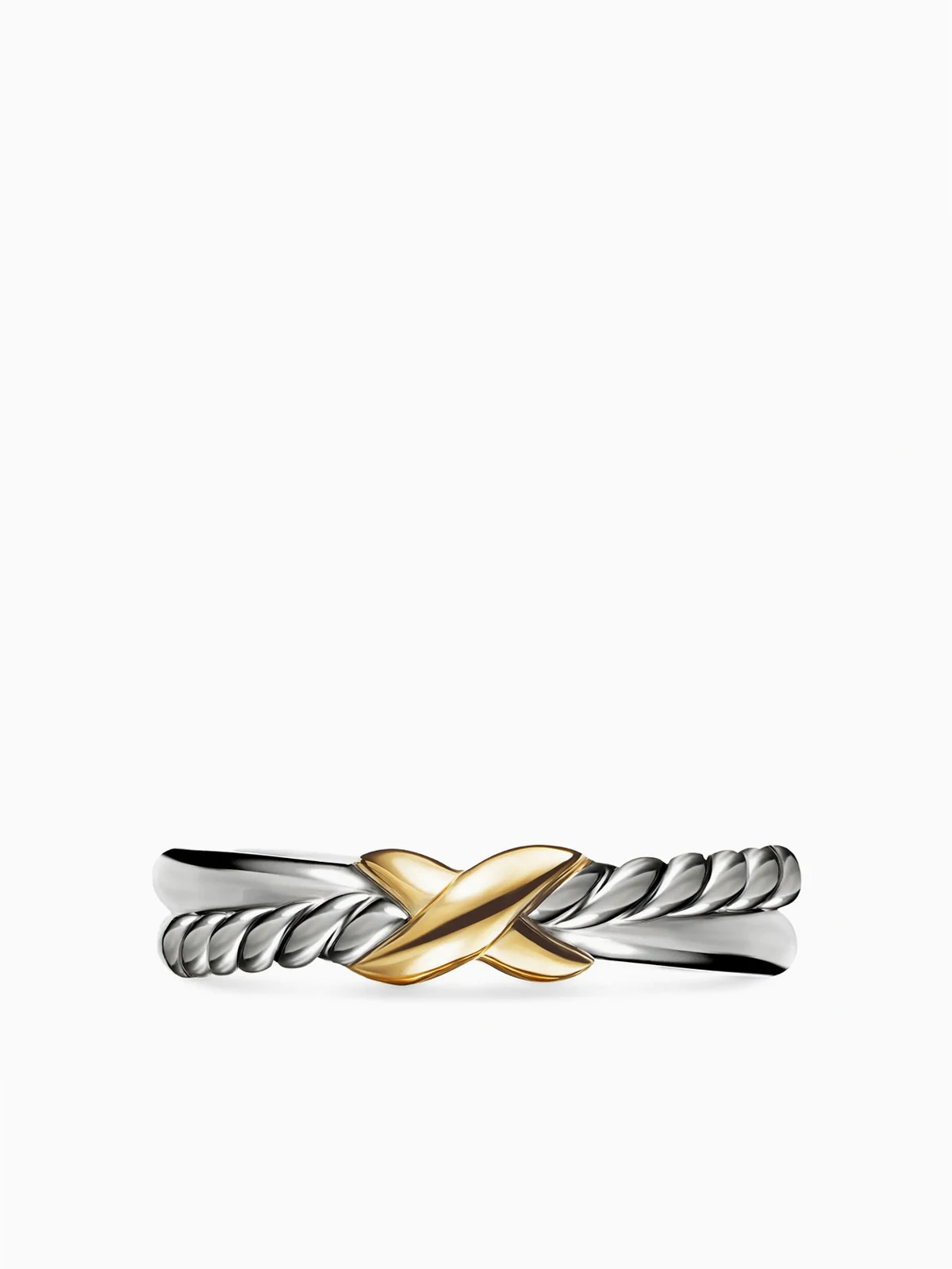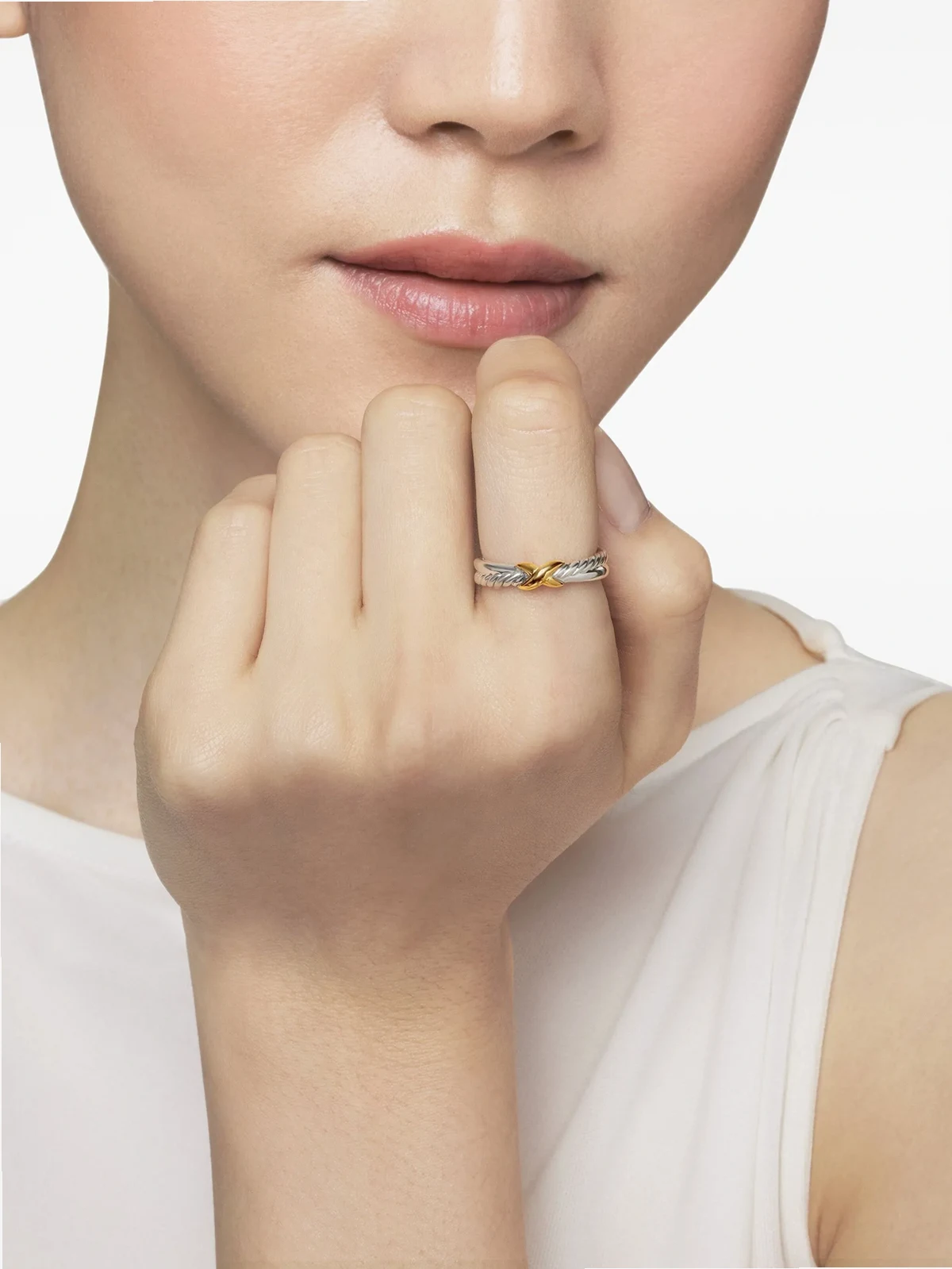 18kt yellow gold and sterling silver Petite X ring (4mm)