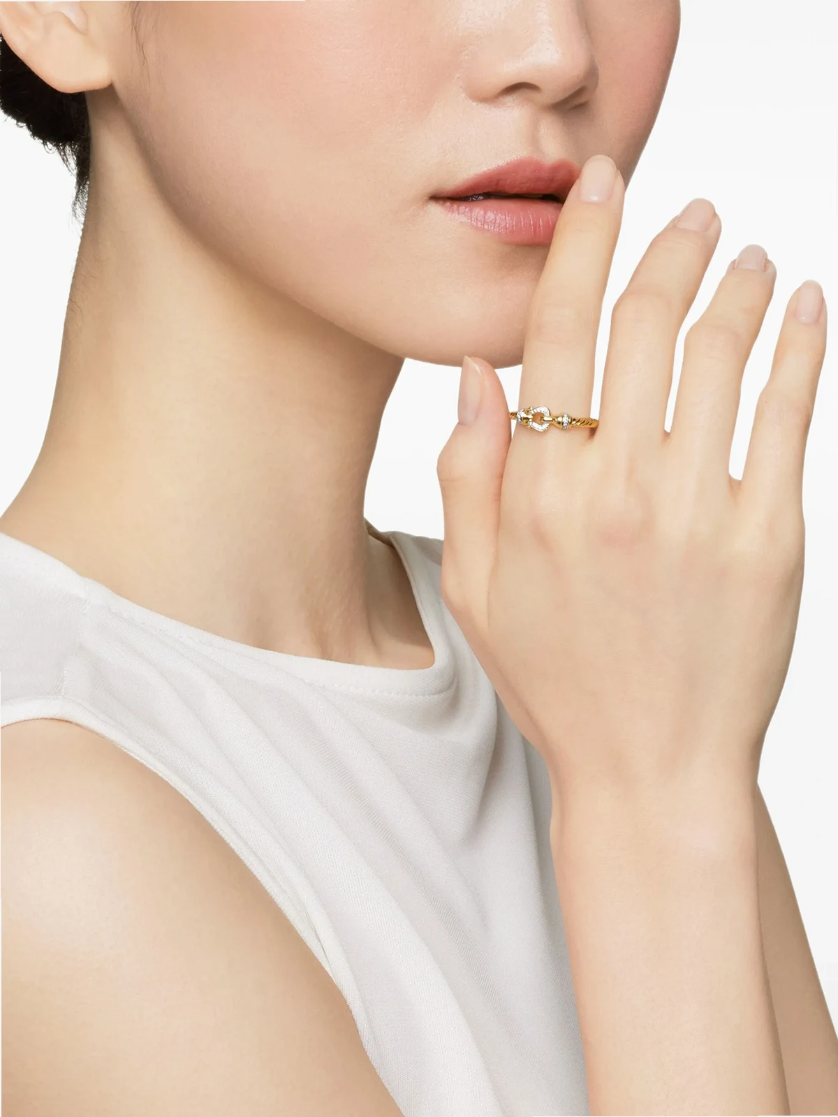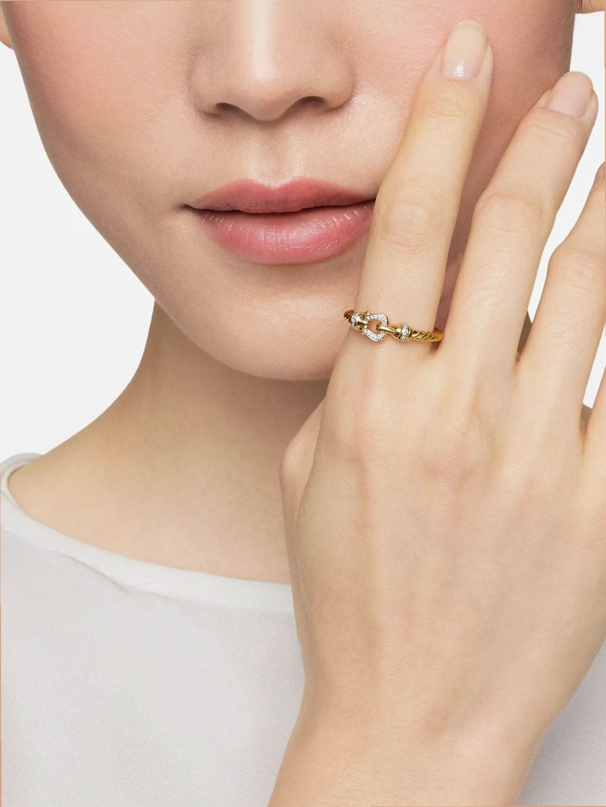 18kt yellow gold Petite Buckle diamond ring (2mm)
