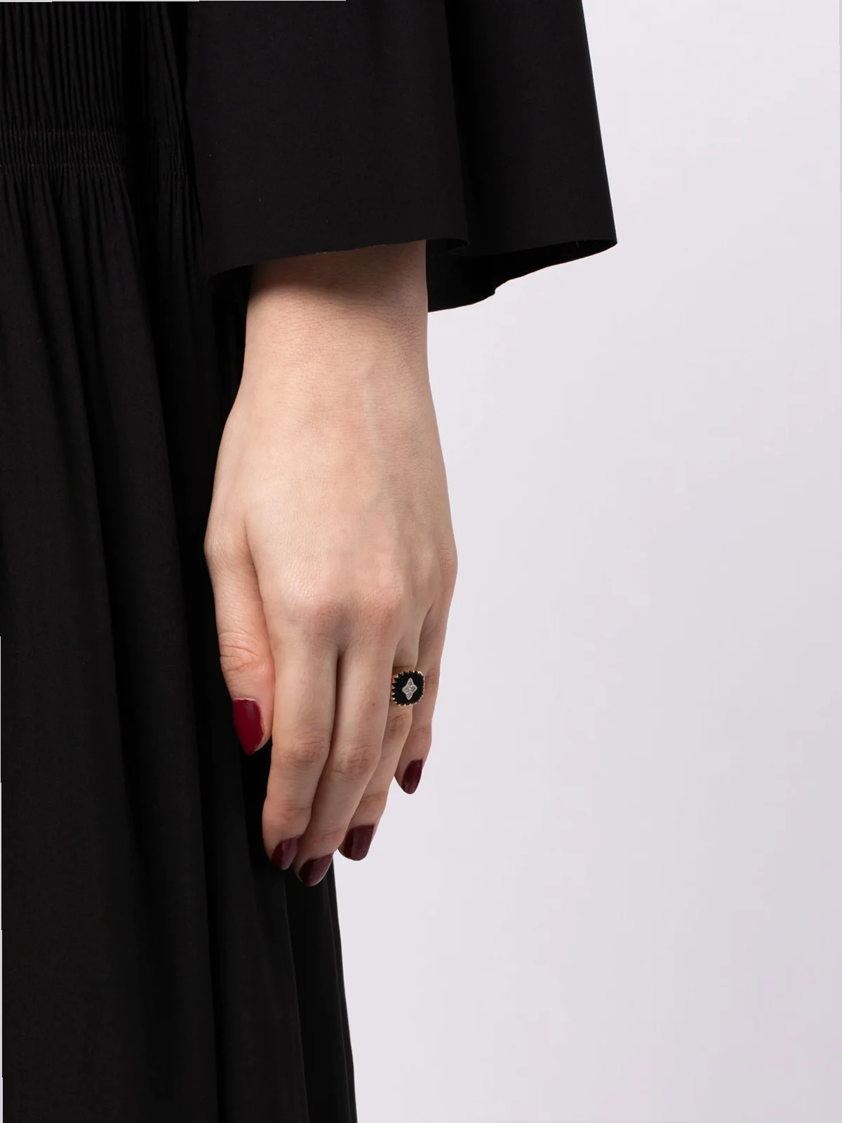 Normal everyday use and external agents may reduce the lustre of gemstones and gold surfaces. To maintain, use specific, non-abrasive products specially meant for cleaning jewellery.
