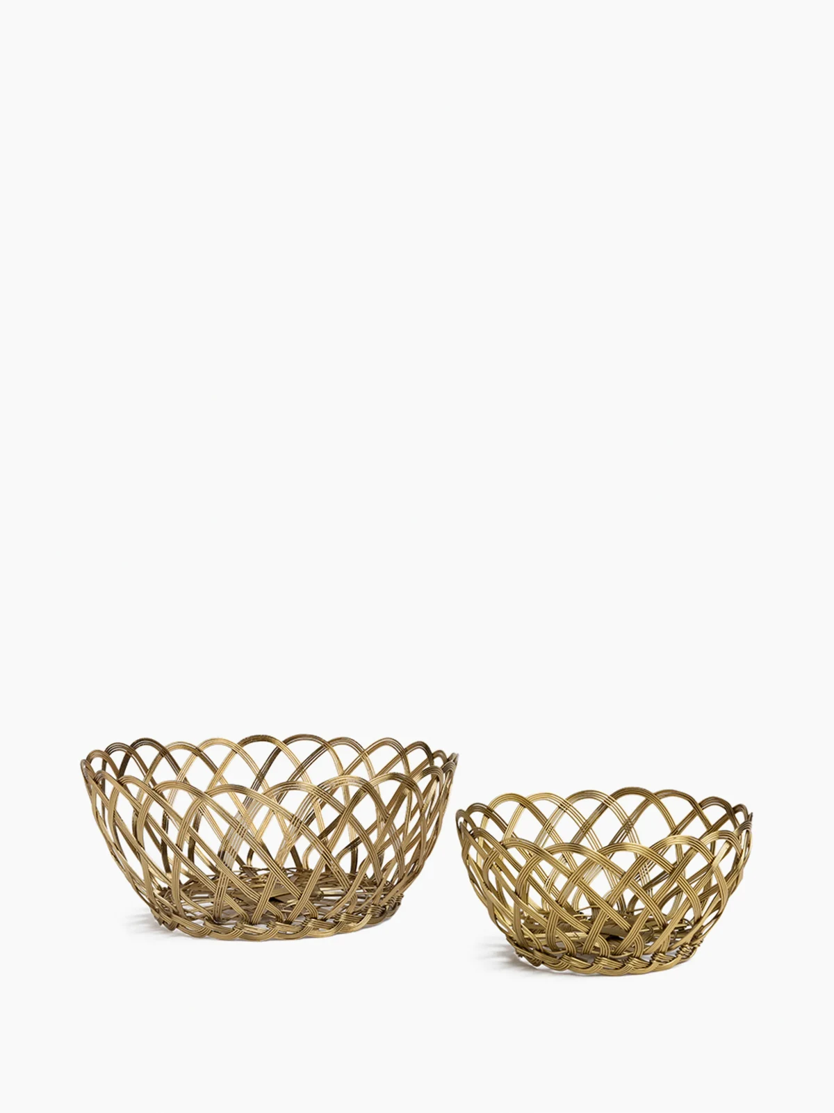 Gold-tone Intreccio large basket from Bitossi Home featuring a woven design, a scalloped mouth and a structured design.