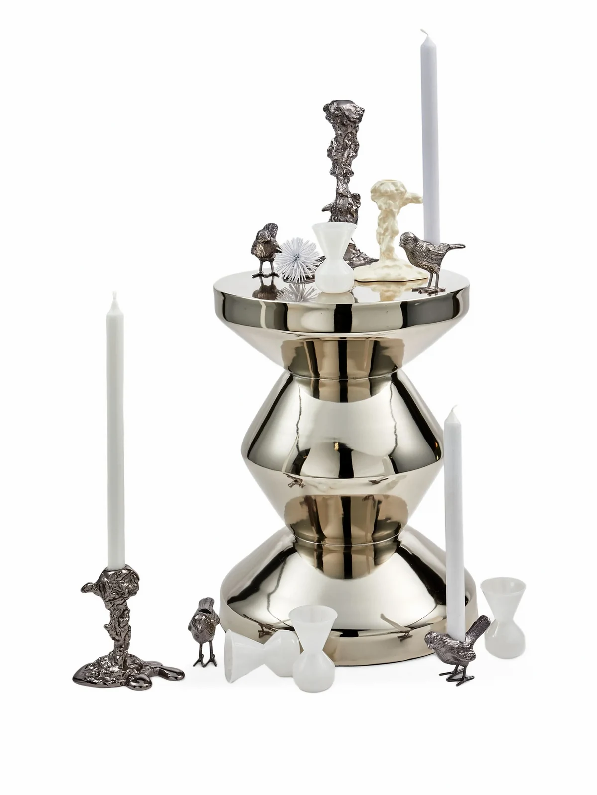 polished metal accent stool