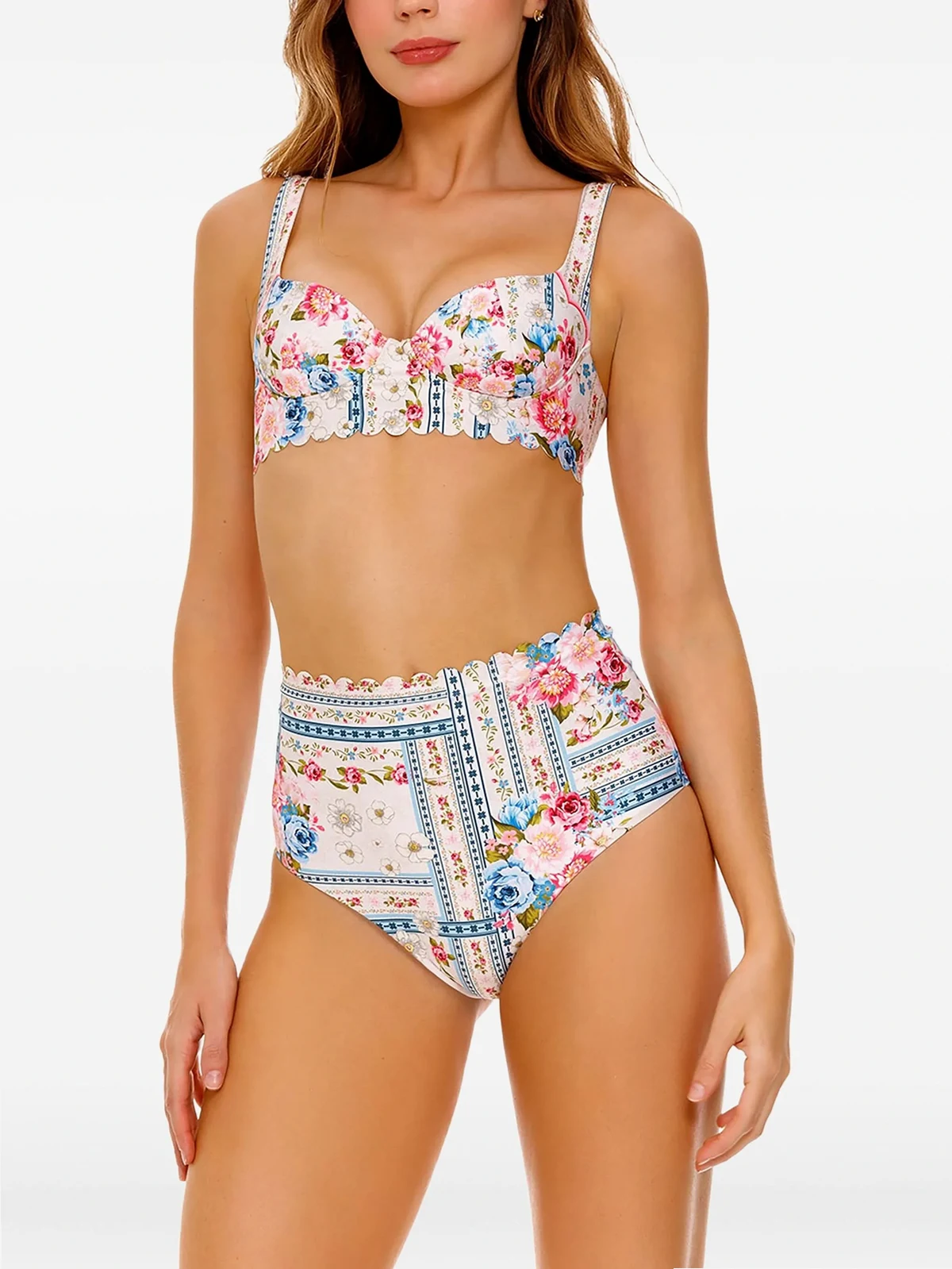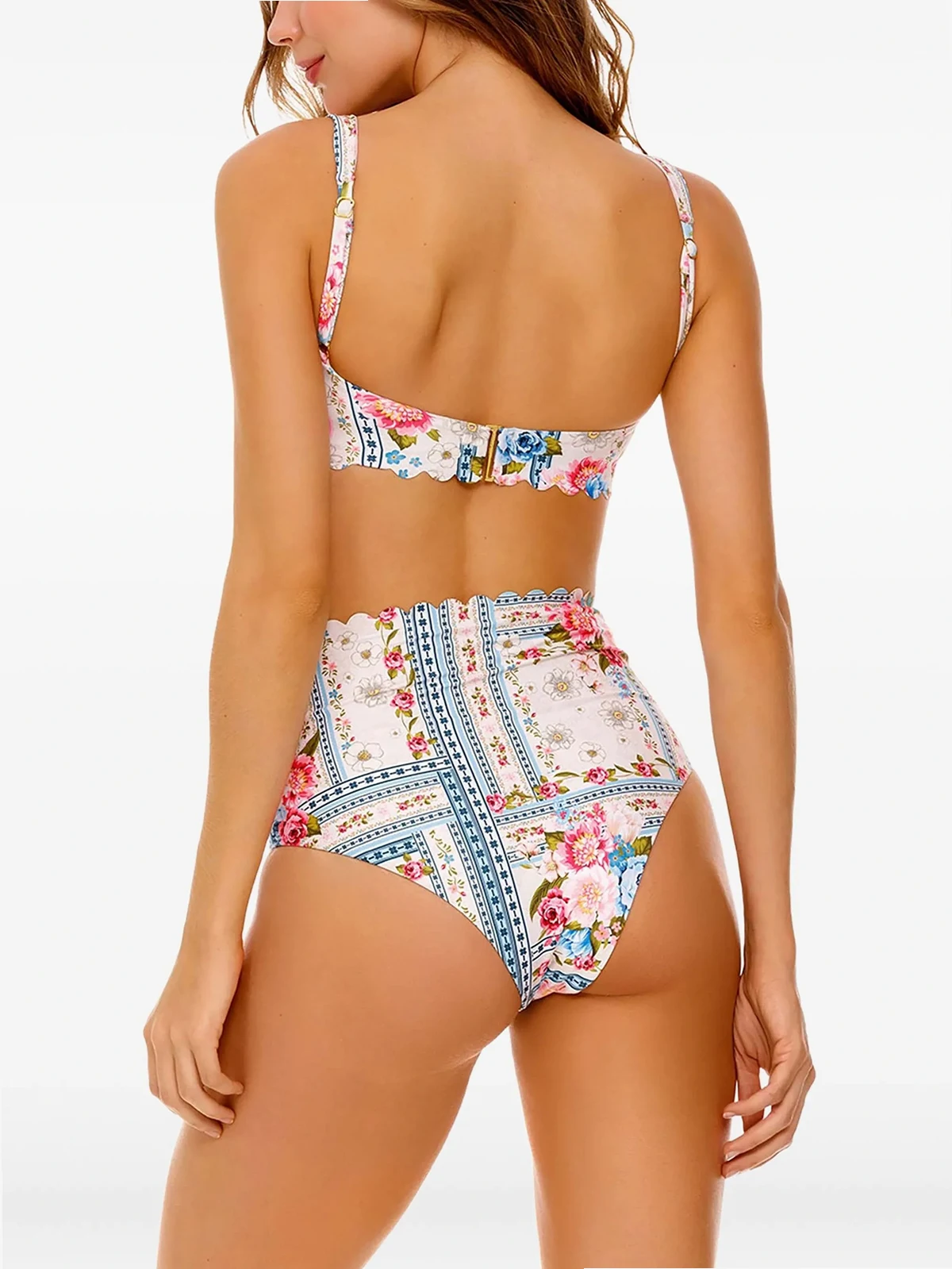 Alicia scalloped floral-print bikini bottom