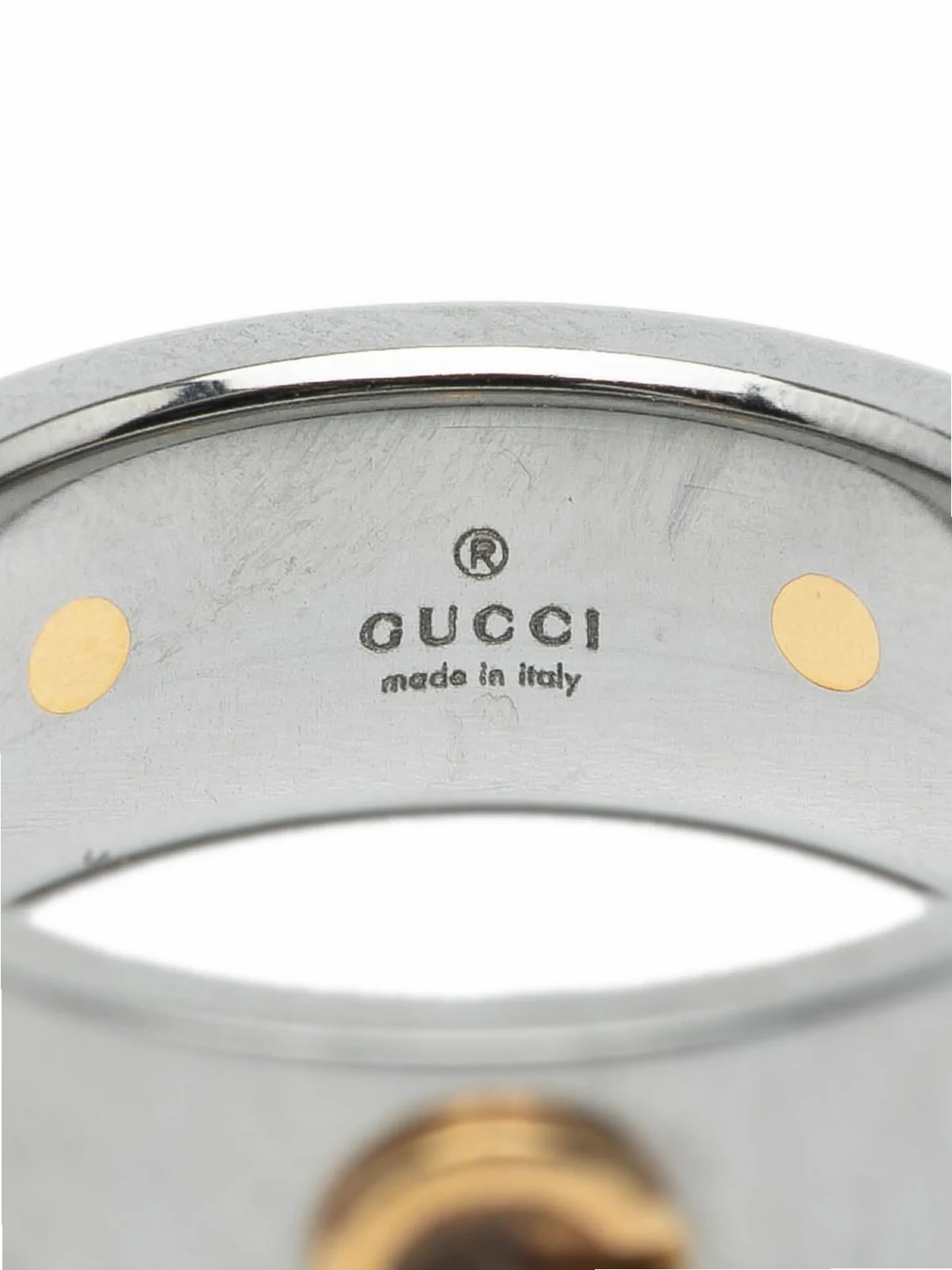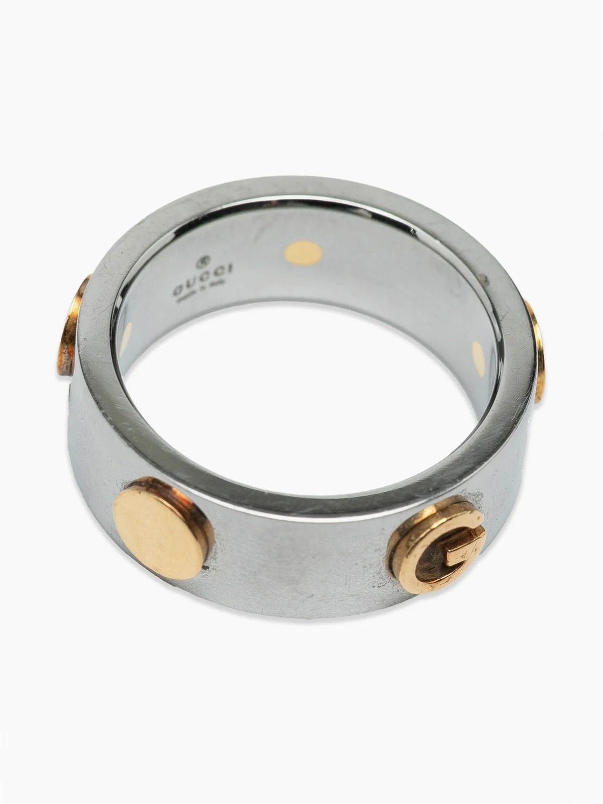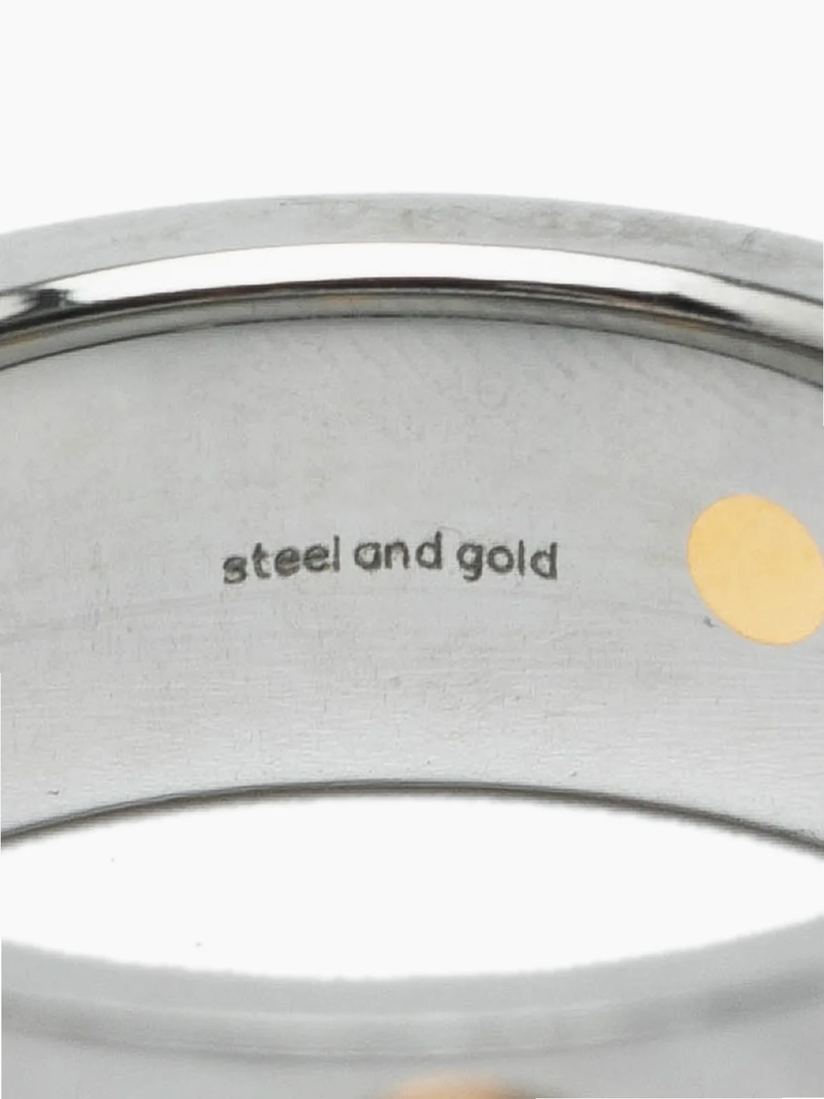 stainless steel and yellow gold plated metal body. US Ring Size: 6.50