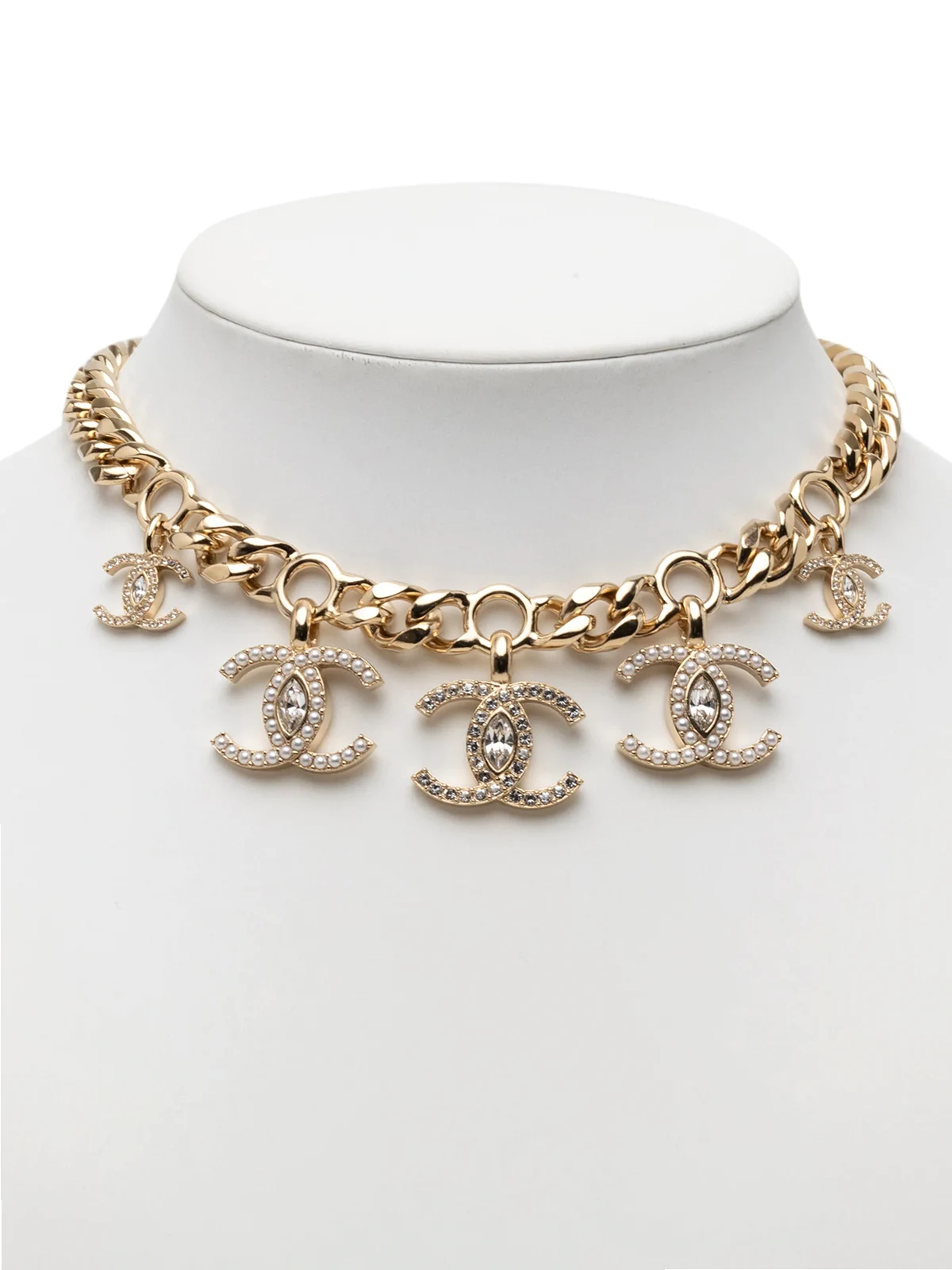 2021 CC Gold Plated Faux Pearl Crystal Choker Necklace costume necklace