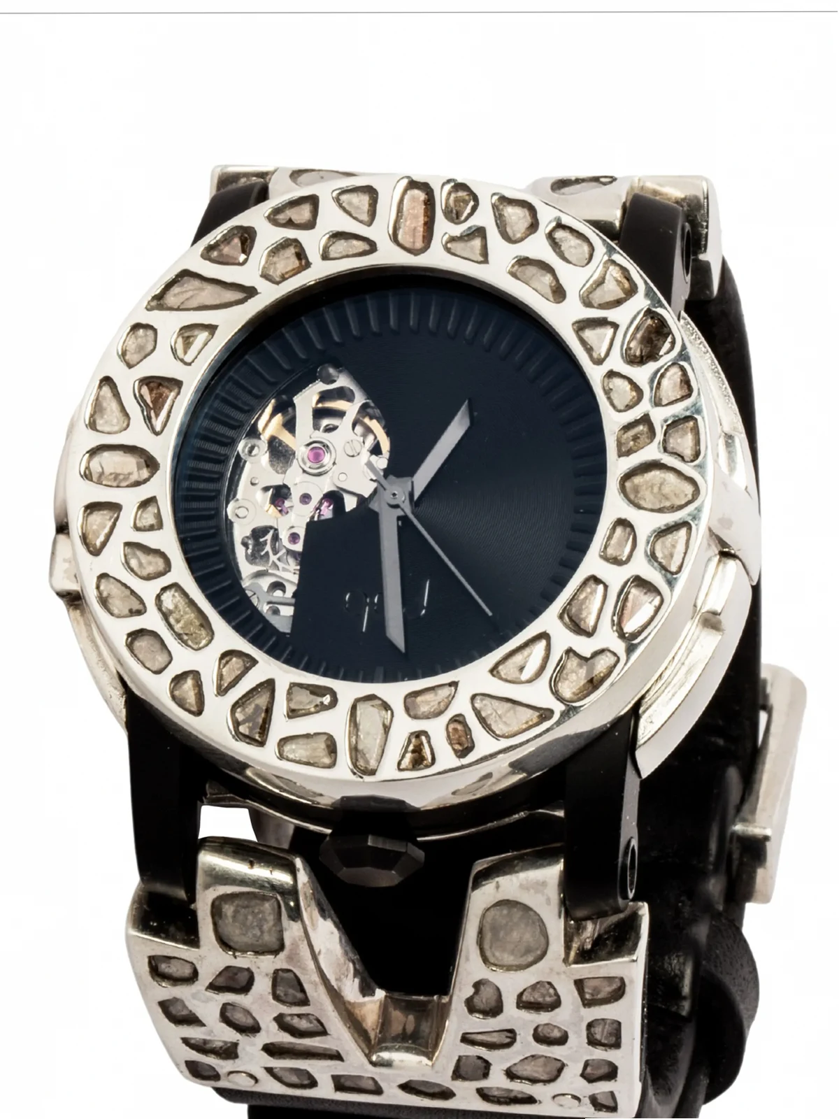 Buffalo Leather 60%, Sterling Silver 30%, Diamond 10%