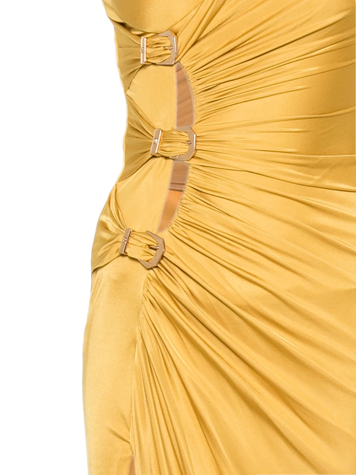 ruched buckle maxi dress