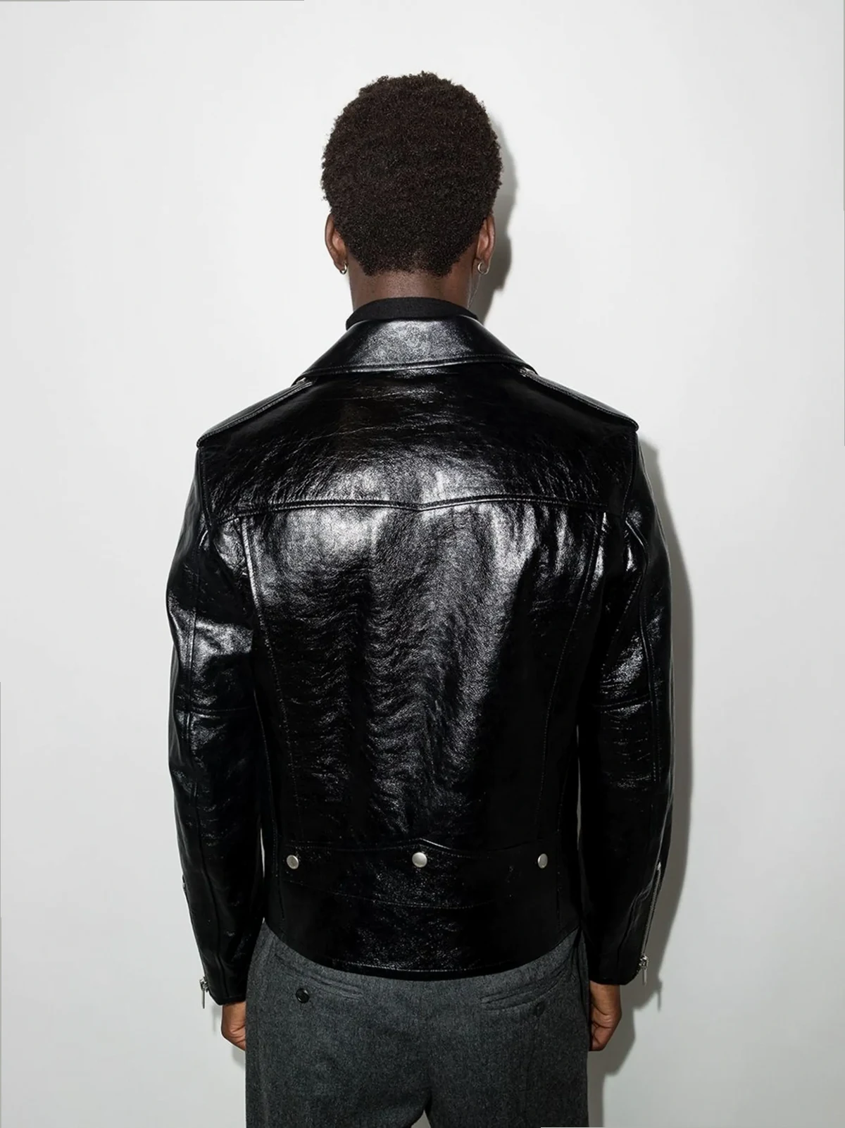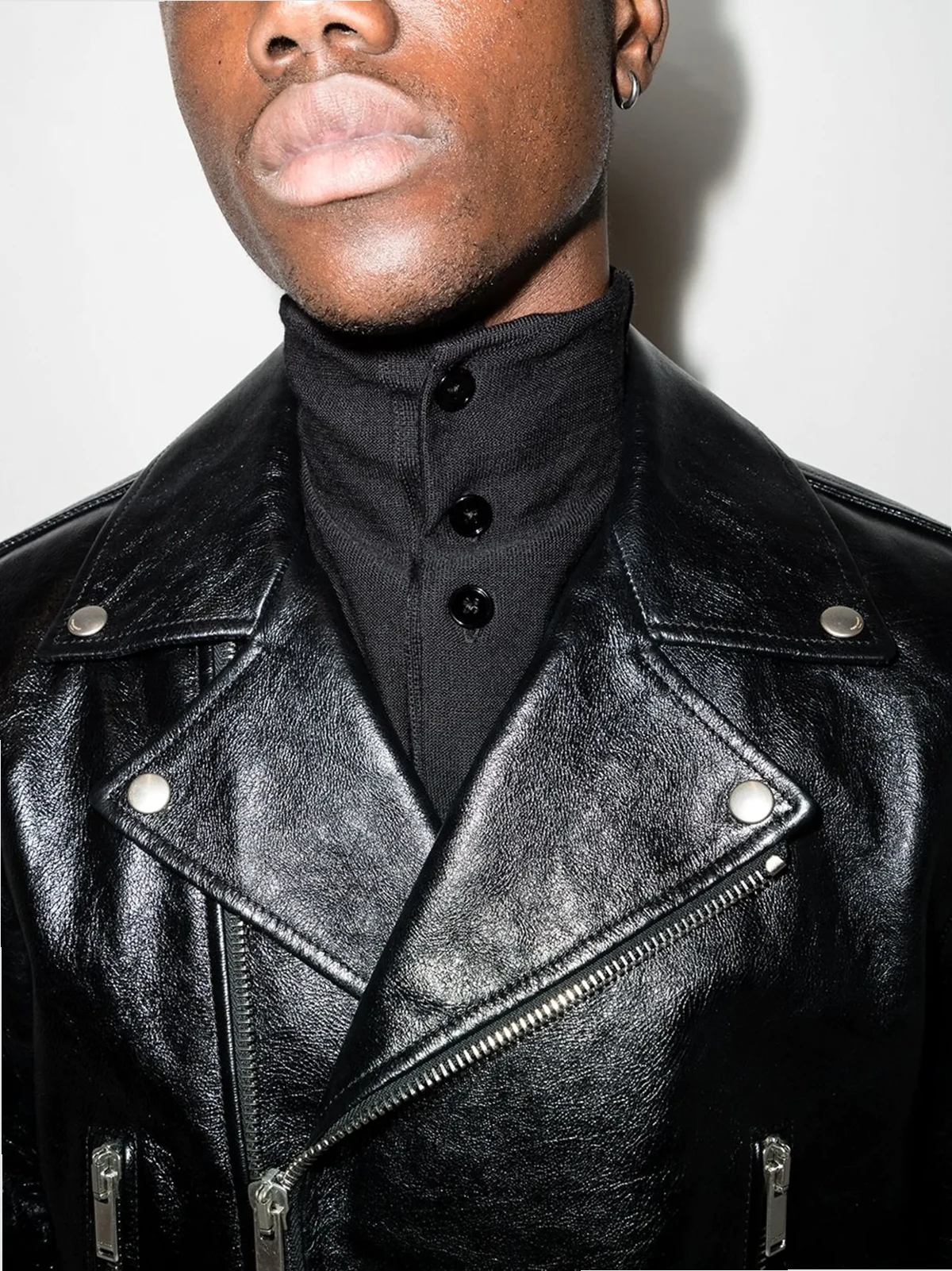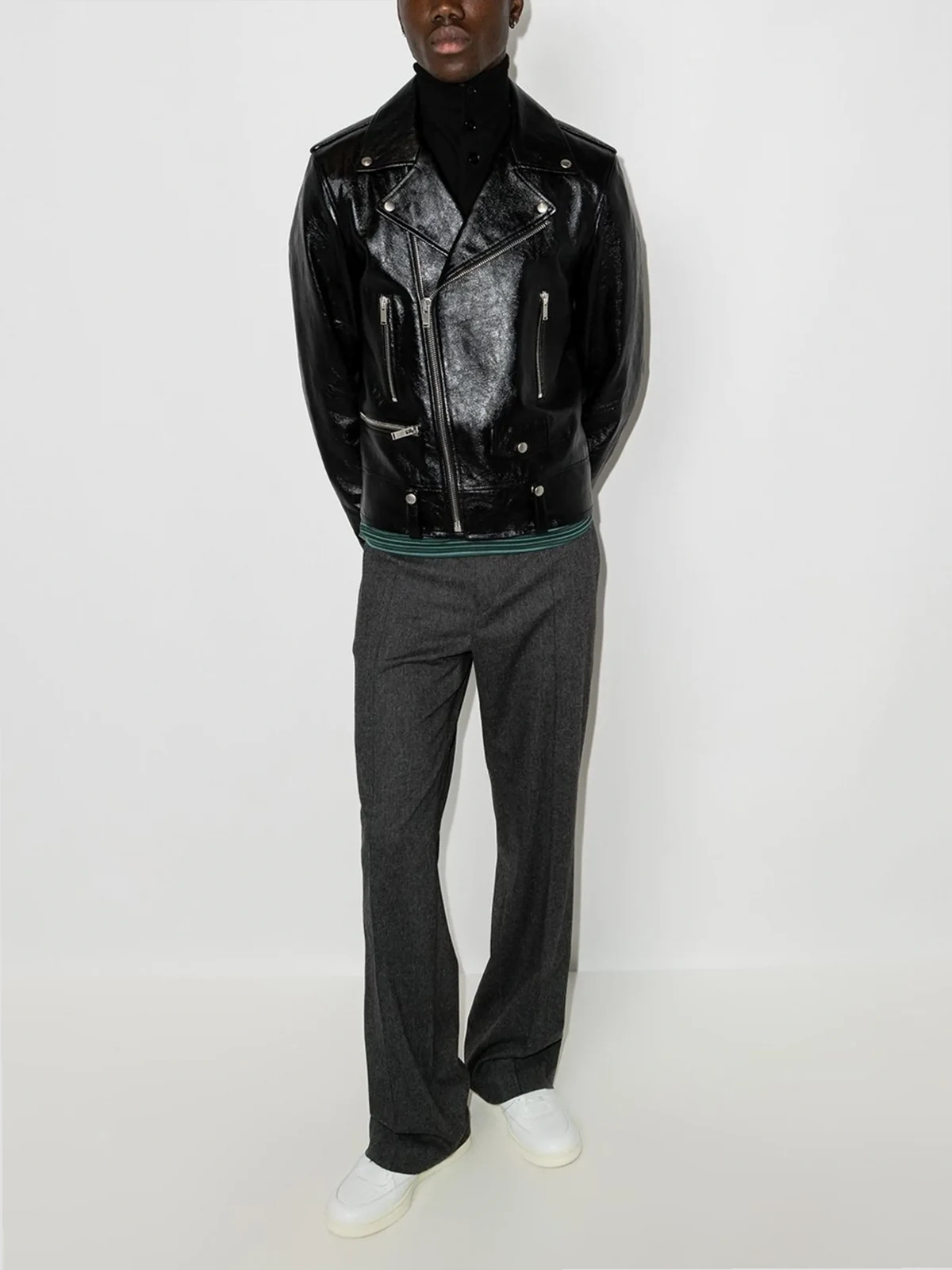 leather zipped biker jacket