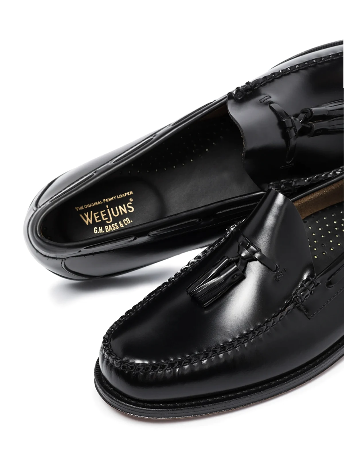 These black G.H. Bass & Co. Weejuns Larkin tassel leather loafers are meticulously crafted using age-old techniques. With a slip-on design, this style has a round toe, handstitched details, front tassels, laced collar, cushioned footbed and leather sole. When you woke up this morning and said to yourself, ‘Let’s get this bread,’ you were referring to these G.H. Bass & Co. loaf ers, yes? Thought so.