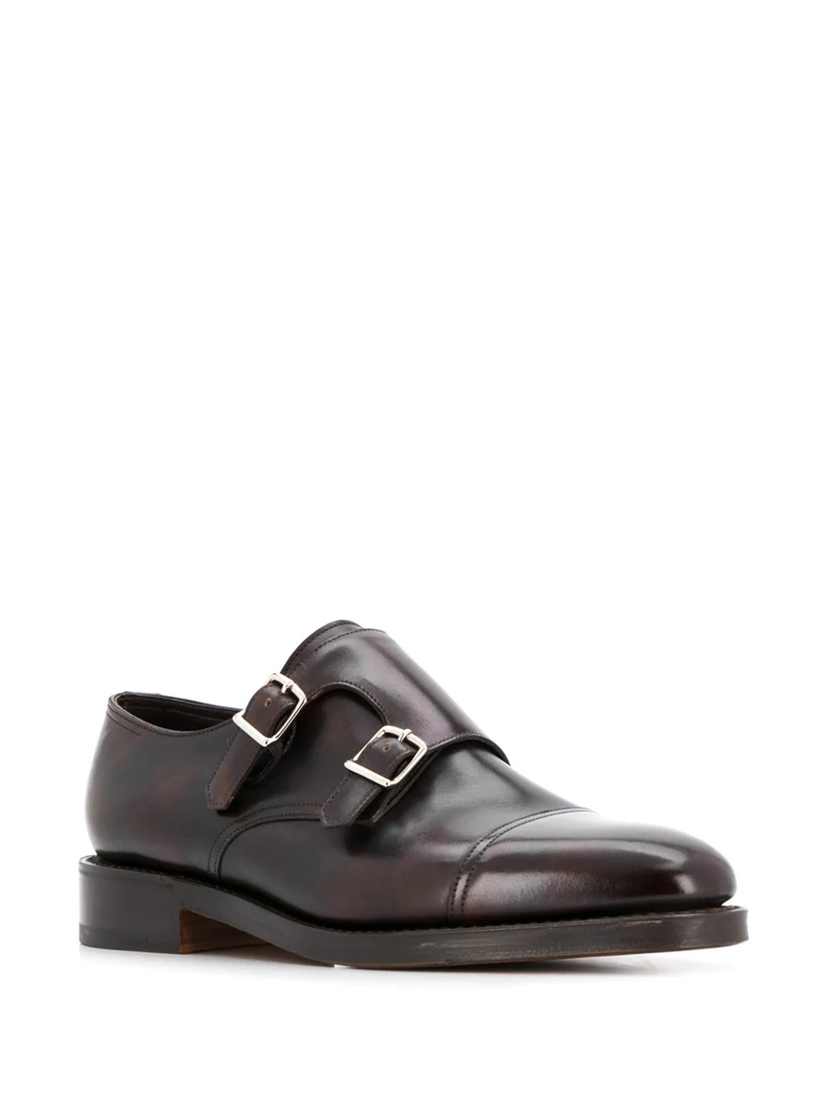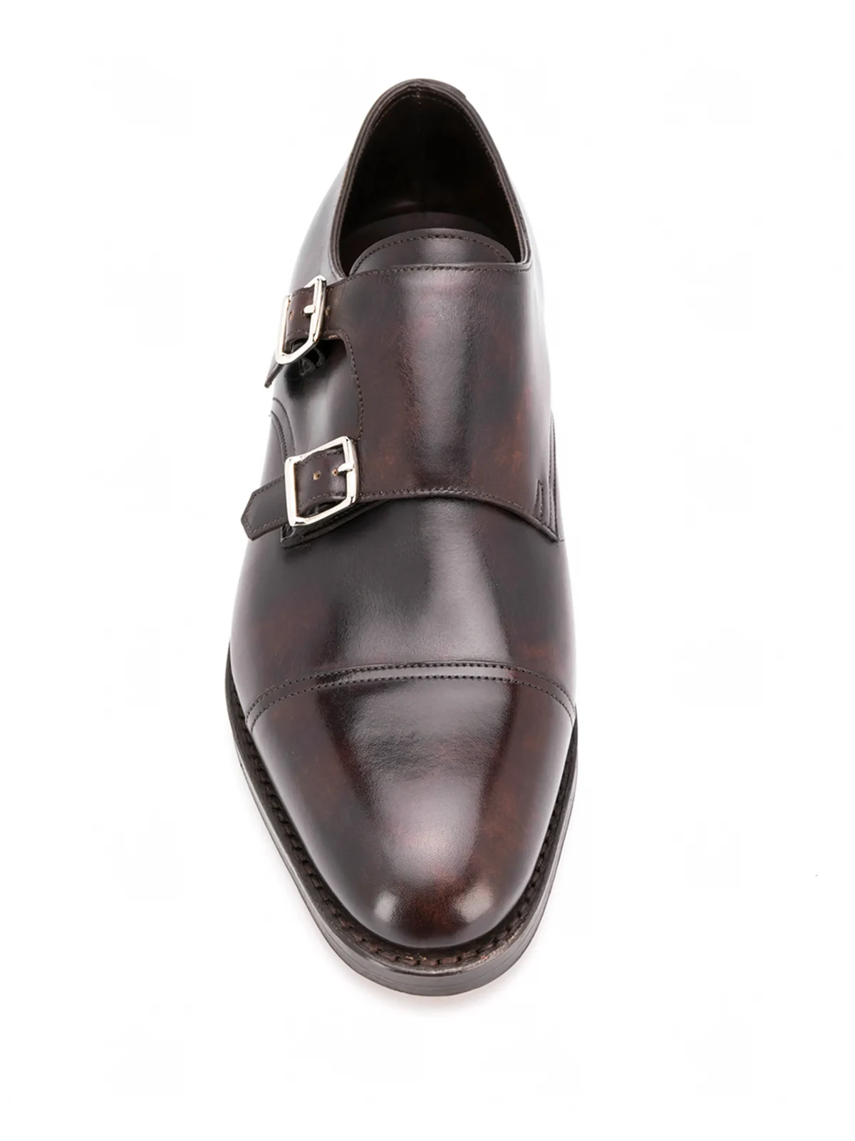 Dark brown leather William buckled monk shoes from John Lobb featuring silver-tone hardware, a pointed toe, a branded insole, a flat sole and a low heel.