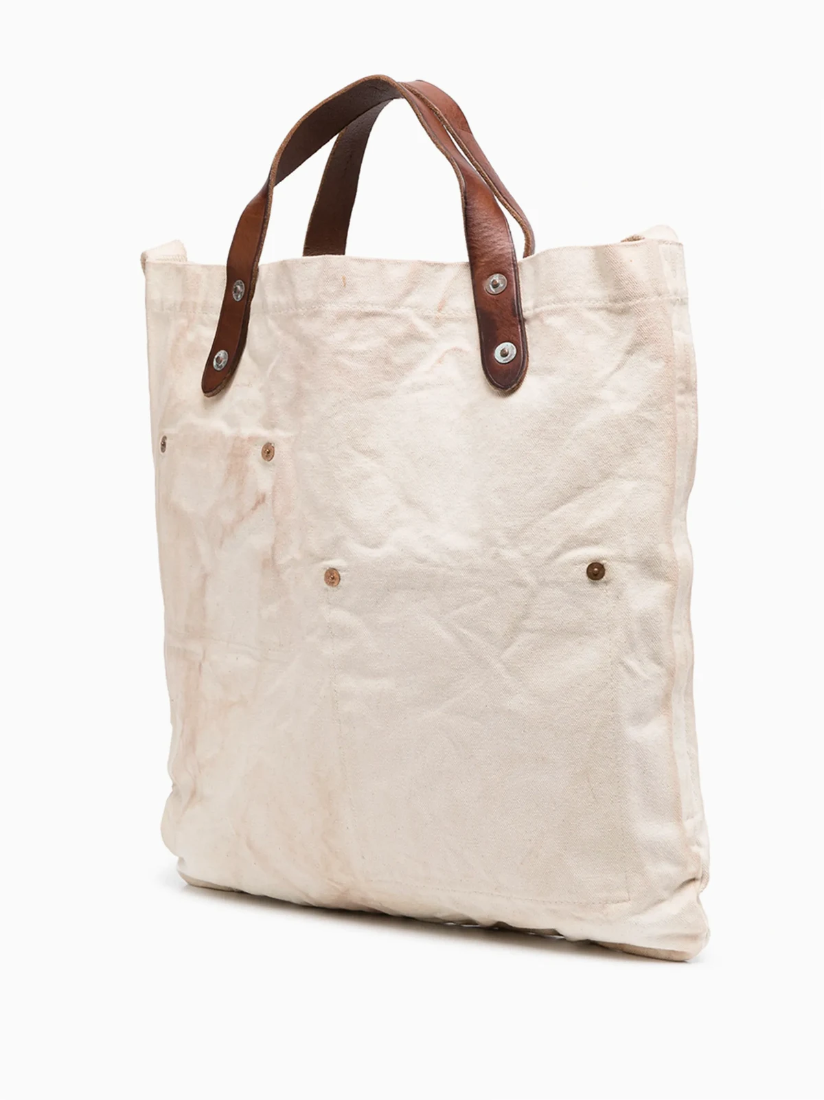 stone white canvas flat top handles single shoulder strap snap-button fastening internal slip pocket