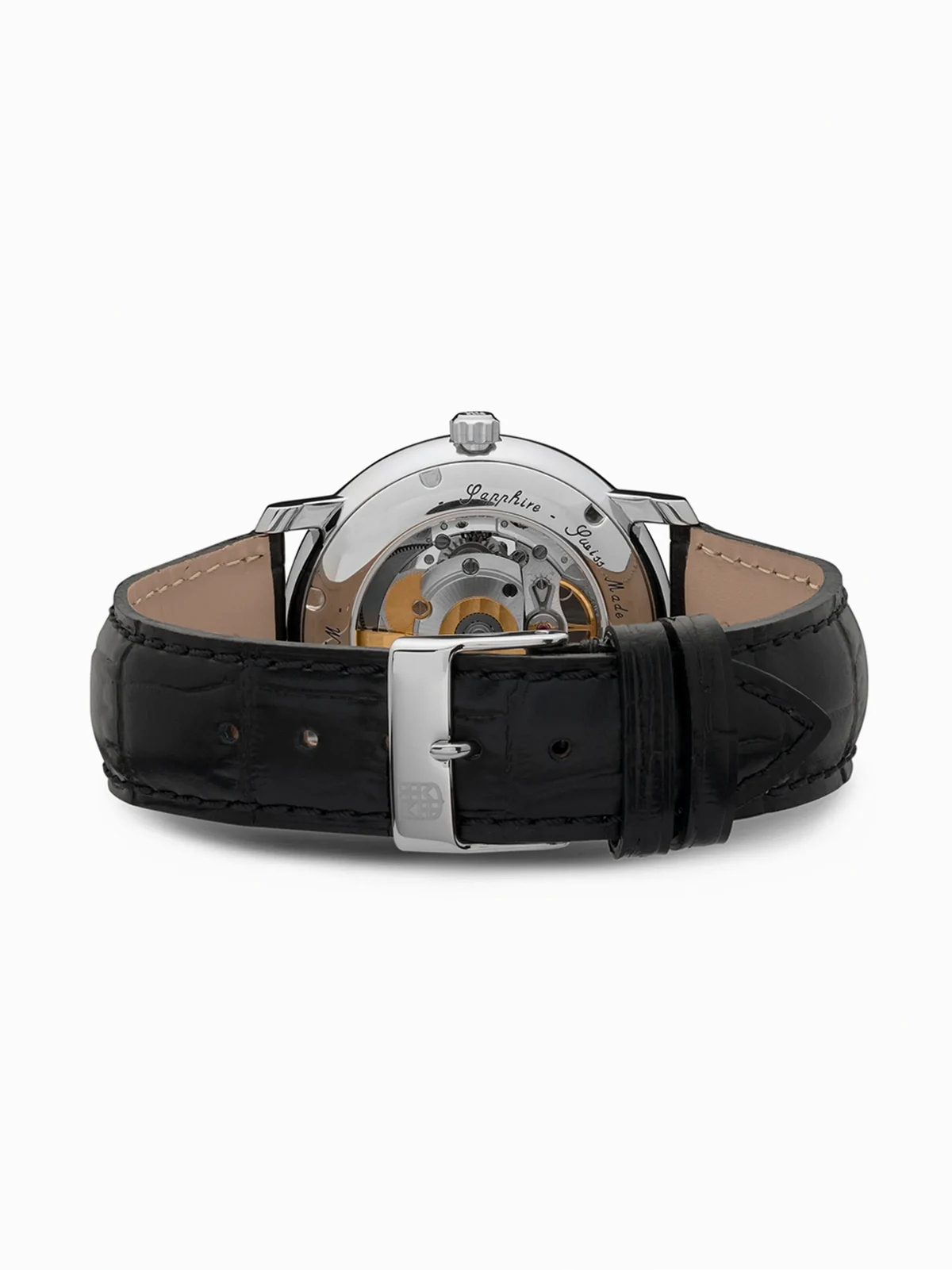 Sapphire Crystal 100%, stainless steel 100%, Calf Leather 100%