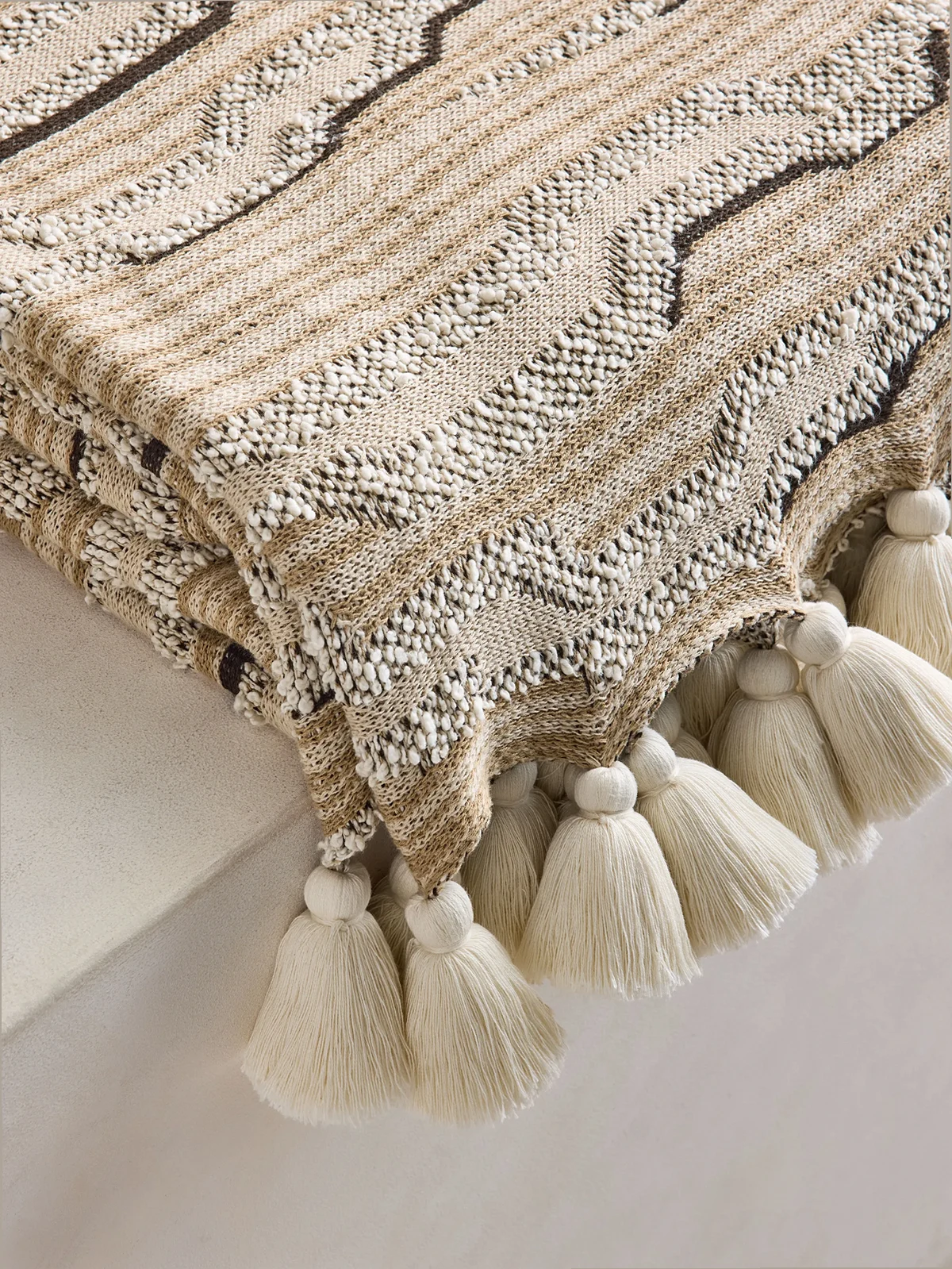 Cloud knitted tassel-detail throw