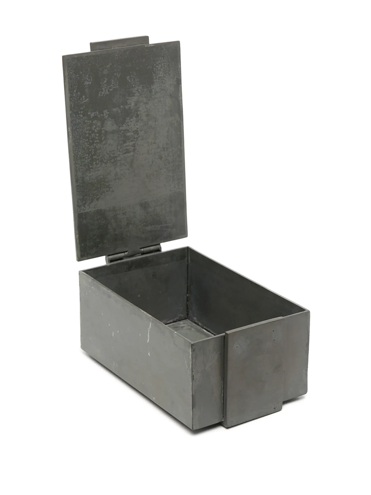 grey iron hard rectangle body matching lid distressed effect