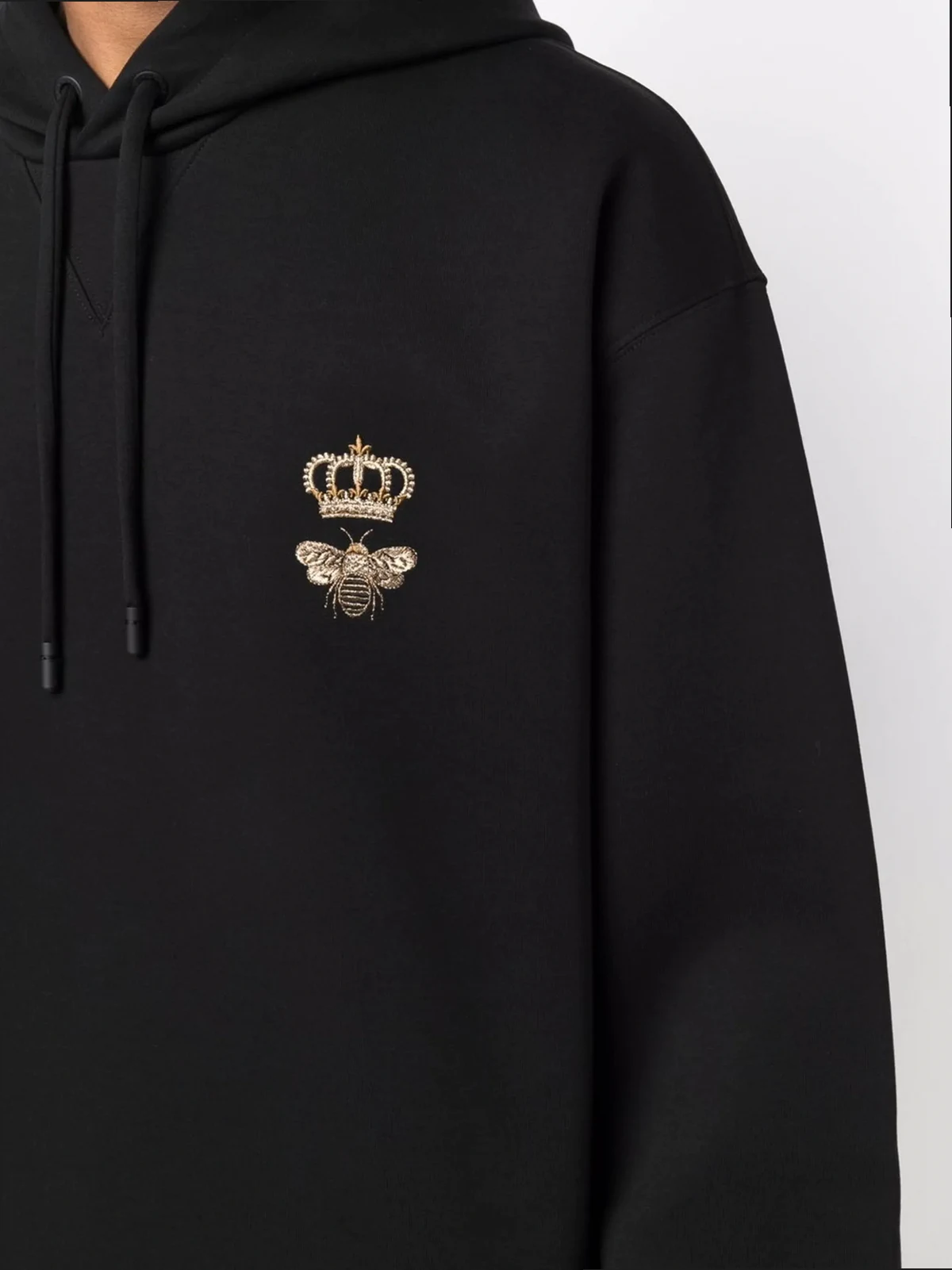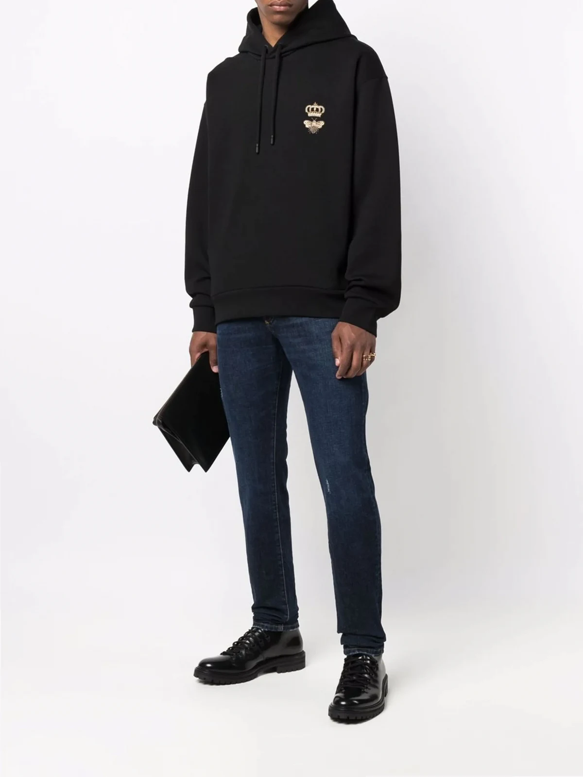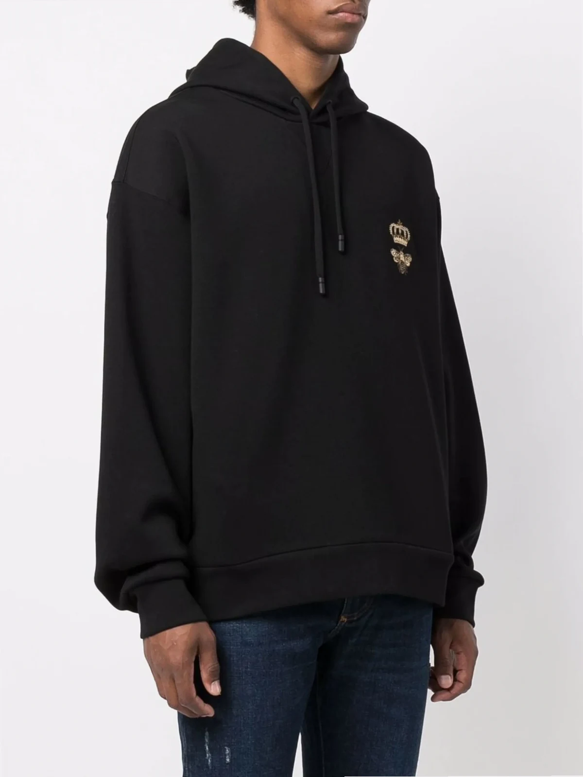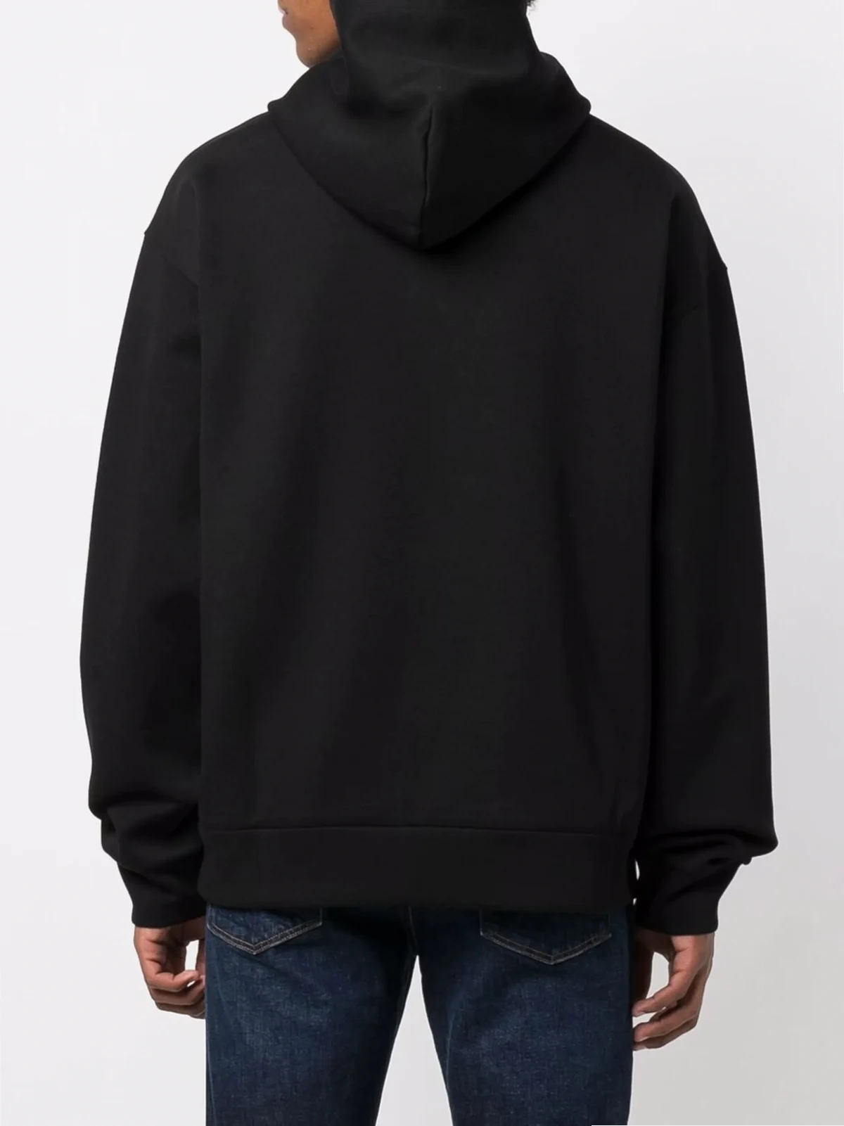 black cotton-blend embroidered motif drawstring hood long sleeves elasticated cuffs elasticated hem