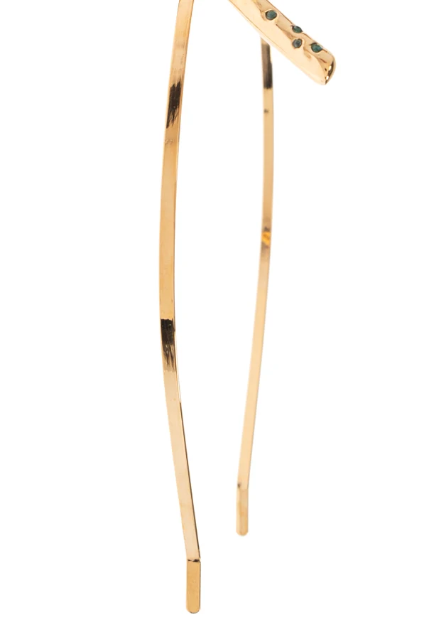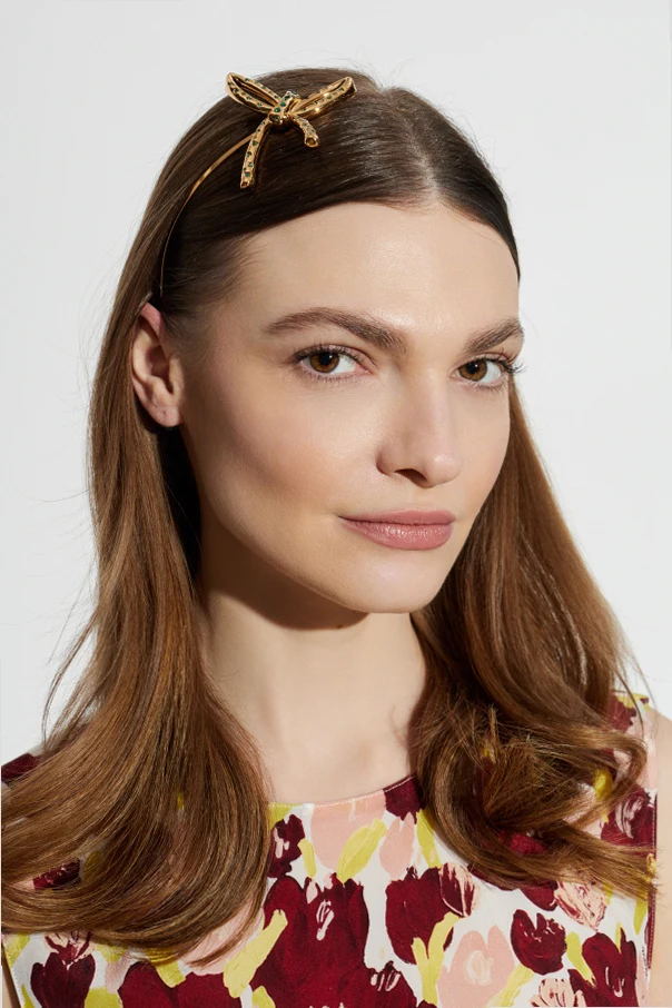 Elevate your look with the Shimmering Crystal Headband by Marni, an exquisite accessory meticulously crafted for the discerning modern woman. Cast in radiant gold tones, this sleek, classic metal headband epitomizes understated luxury with a polished, smooth finish. The focal point—a sculptural, spatially designed bow—commands attention, adorned with artistically placed, sparkling crystal embellishments that catch every glance and glimmer in the light.