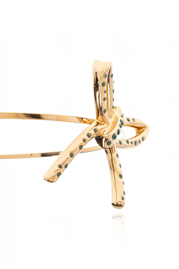 With its minimalist yet contemporary silhouette, each detail speaks to Marni’s rich tradition of bold design and refined craftsmanship. The bow’s arrangement creates an impression of hand-tied artistry, marrying elegance with individuality. This refined piece, made from lustrous glass and brass, promises both comfort and a striking style statement, perfectly complementing any sophisticated ensemble.