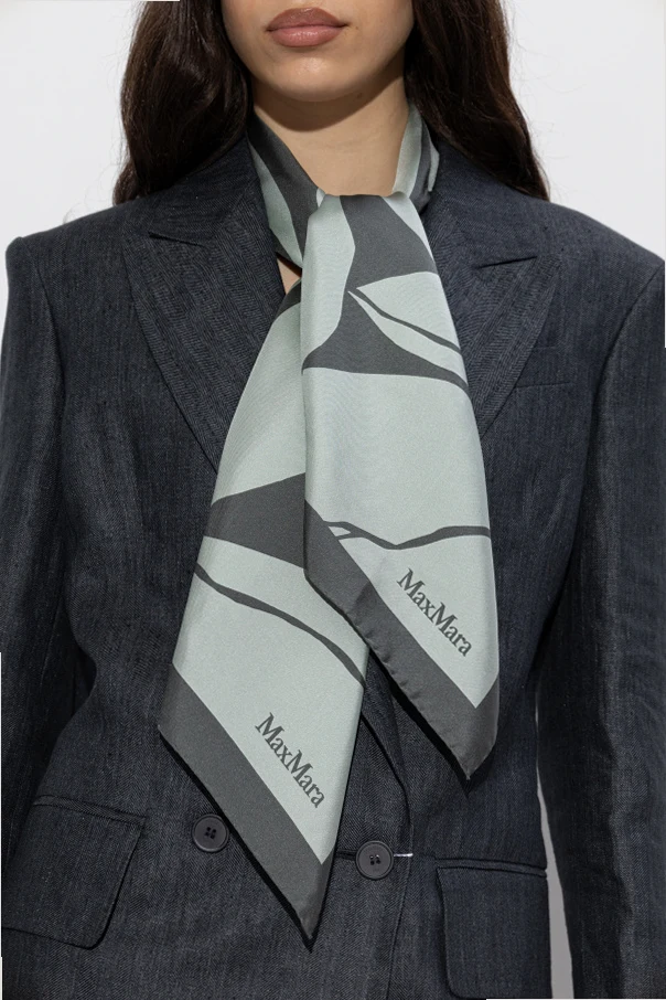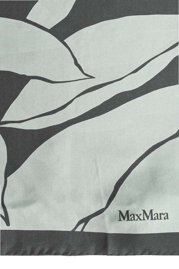 The striking botanical motif—bold, graphic leaves—dances across a canvas of deep green contrasted elegantly by softer pastel greens. This modern, artistic pattern ensures instant distinction, while expertly finished edges speak to impeccable craftsmanship. A discreet yet unmistakable Max Mara logo adorns one corner, attesting to its authenticity and exclusivity.
