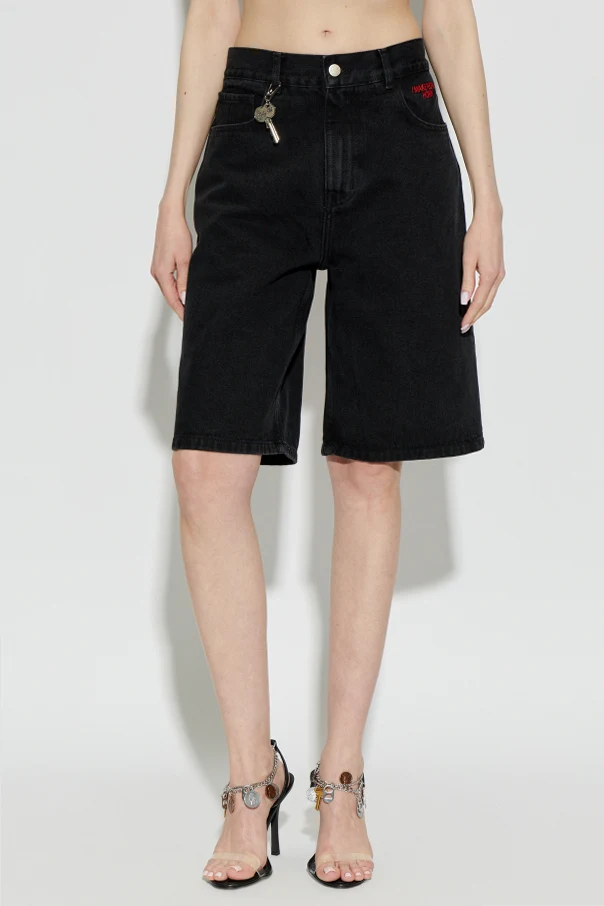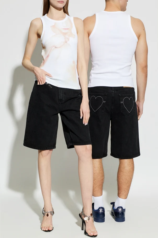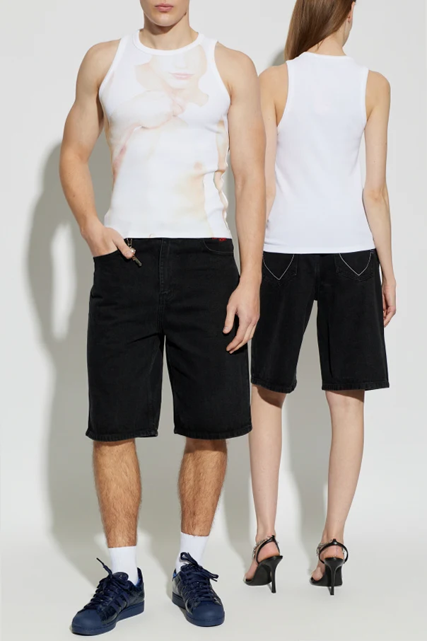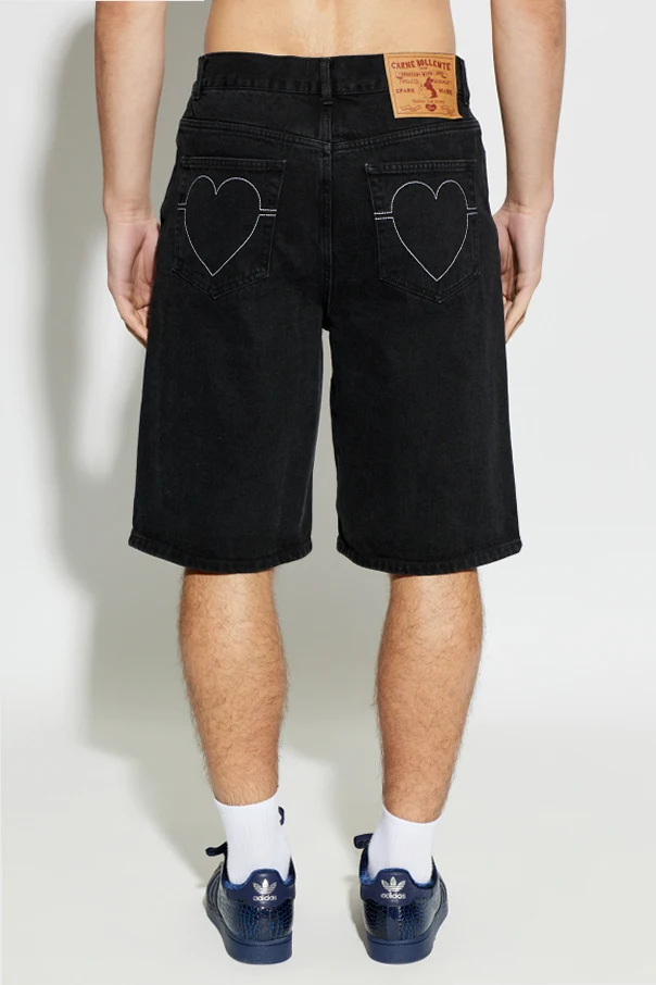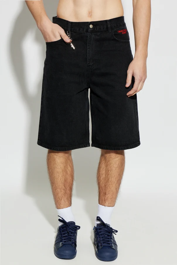 Elevate your wardrobe with these black denim shorts from CARNE BOLLENTE, thoughtfully designed for an impeccable unisex fit. Featuring a relaxed, knee-length silhouette and straight-cut legs, these shorts exude contemporary sophistication while maintaining casual versatility.