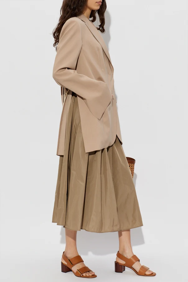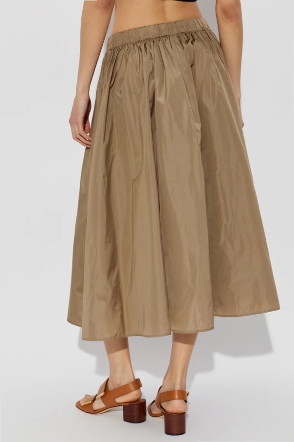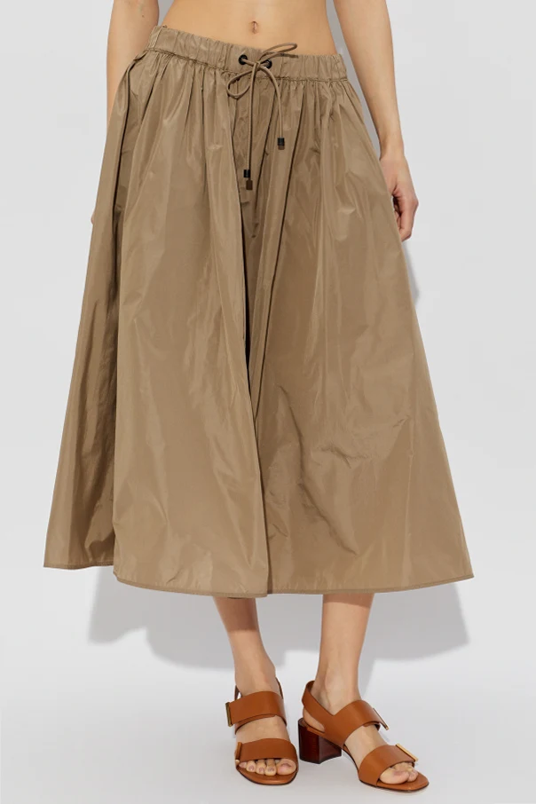 The Lonza Skirt by Max Mara exemplifies understated elegance with its refined midi length and delicately flared silhouette. Meticulously crafted from a luxurious blend of polyester and silk, its airy composition features a subtle sheen and a technical texture, ideal for the spring and summer seasons.