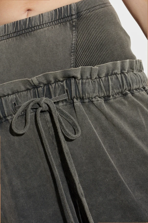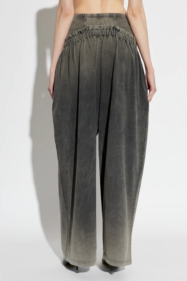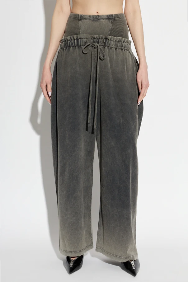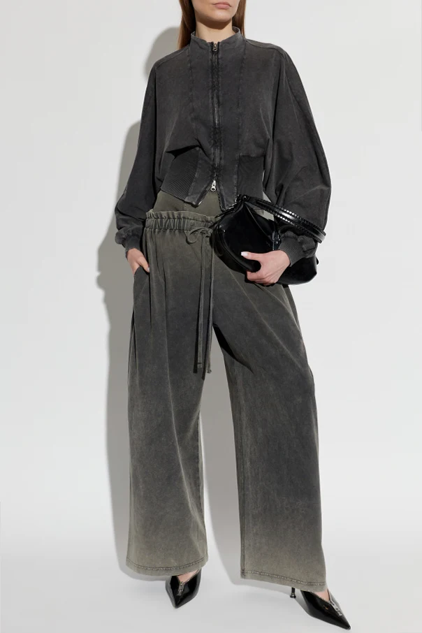 Crafted from sumptuous cotton with a distinctive washed finish, the fabric reveals a subtle, artisanal fade effect that speaks to a sense of casual luxury. The high, ribbed turtleneck-inspired waistband is elegantly defined and equipped with a discreet drawstring, ensuring an adjustable and flattering fit without compromising on style.