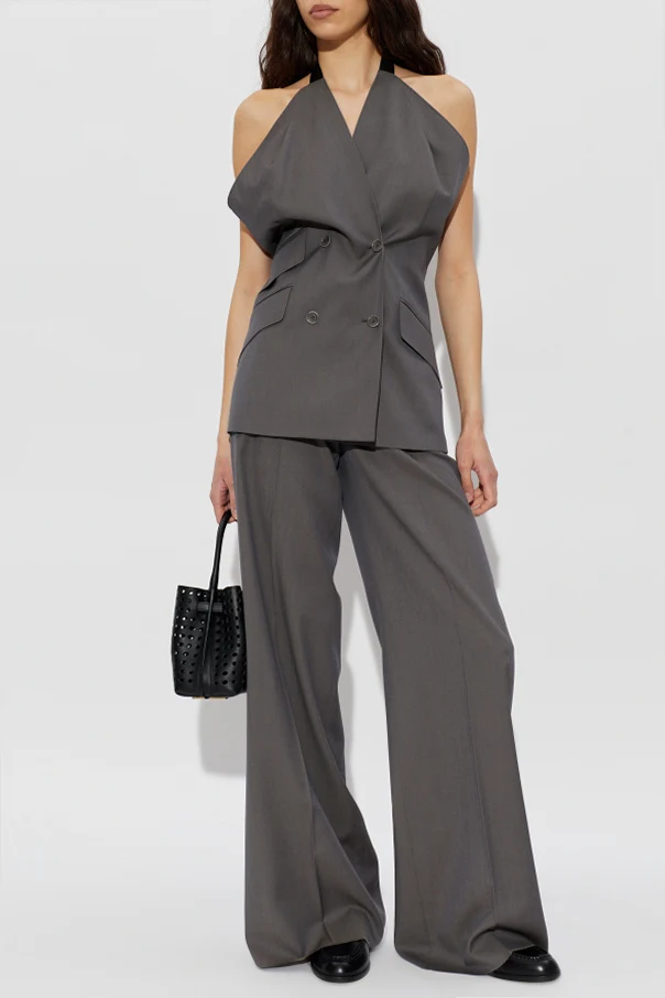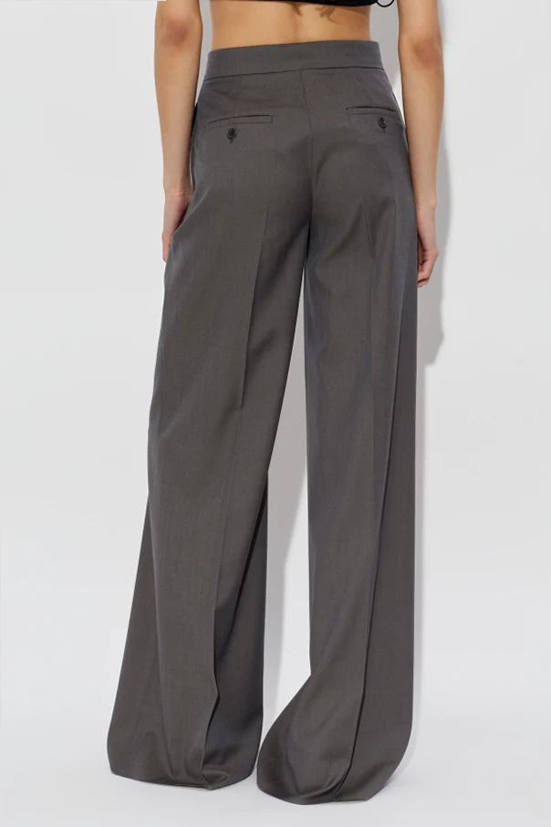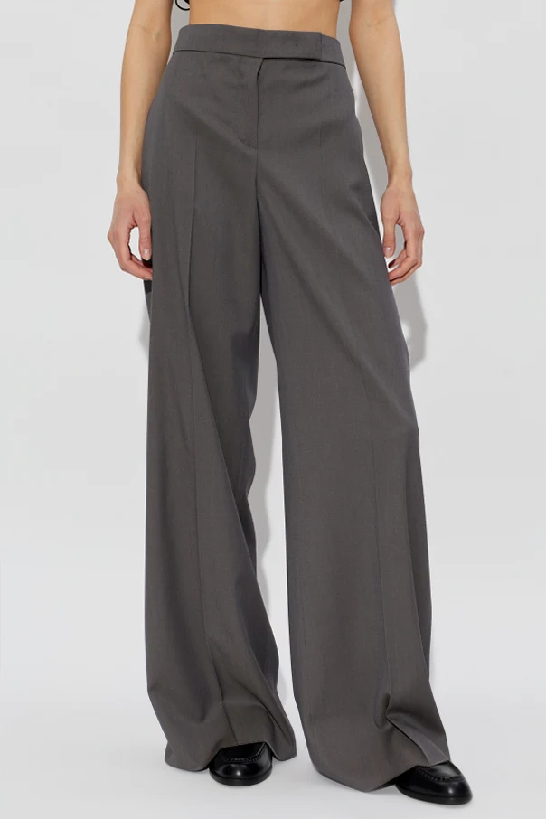 Elevate your formal wardrobe with the exquisite Serio Trousers by Max Mara, meticulously crafted for the discerning woman. Rendered in a luxuriously smooth wool fabric, these wide-leg trousers are tailored to perfection with a refined high waist and elongated, flowing legs that gracefully drape over shoes, exuding an air of understated sophistication.